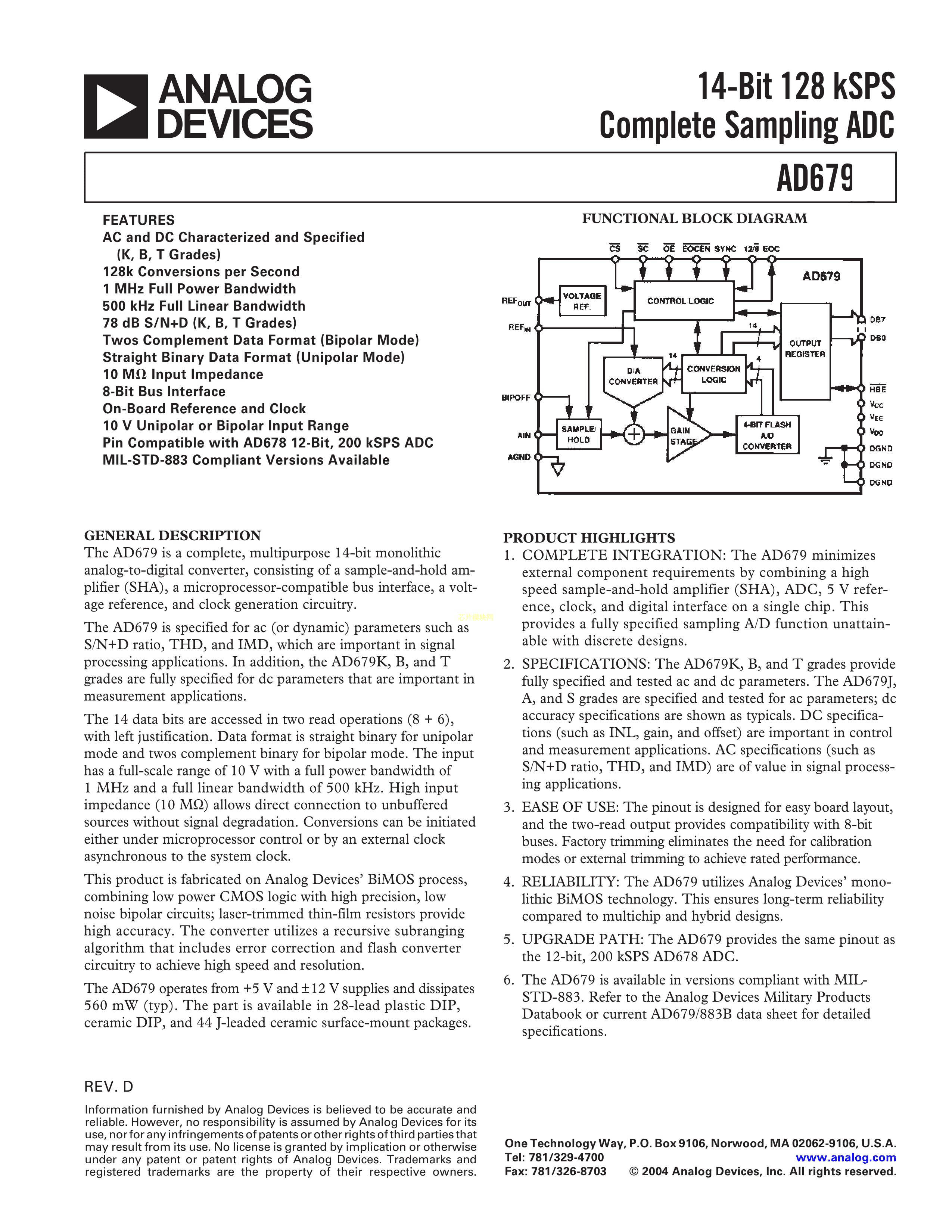 AD679JNZ数据手册PDIP-28封装ADI(亚德诺)-LINEARPDF规格书,中英文下载