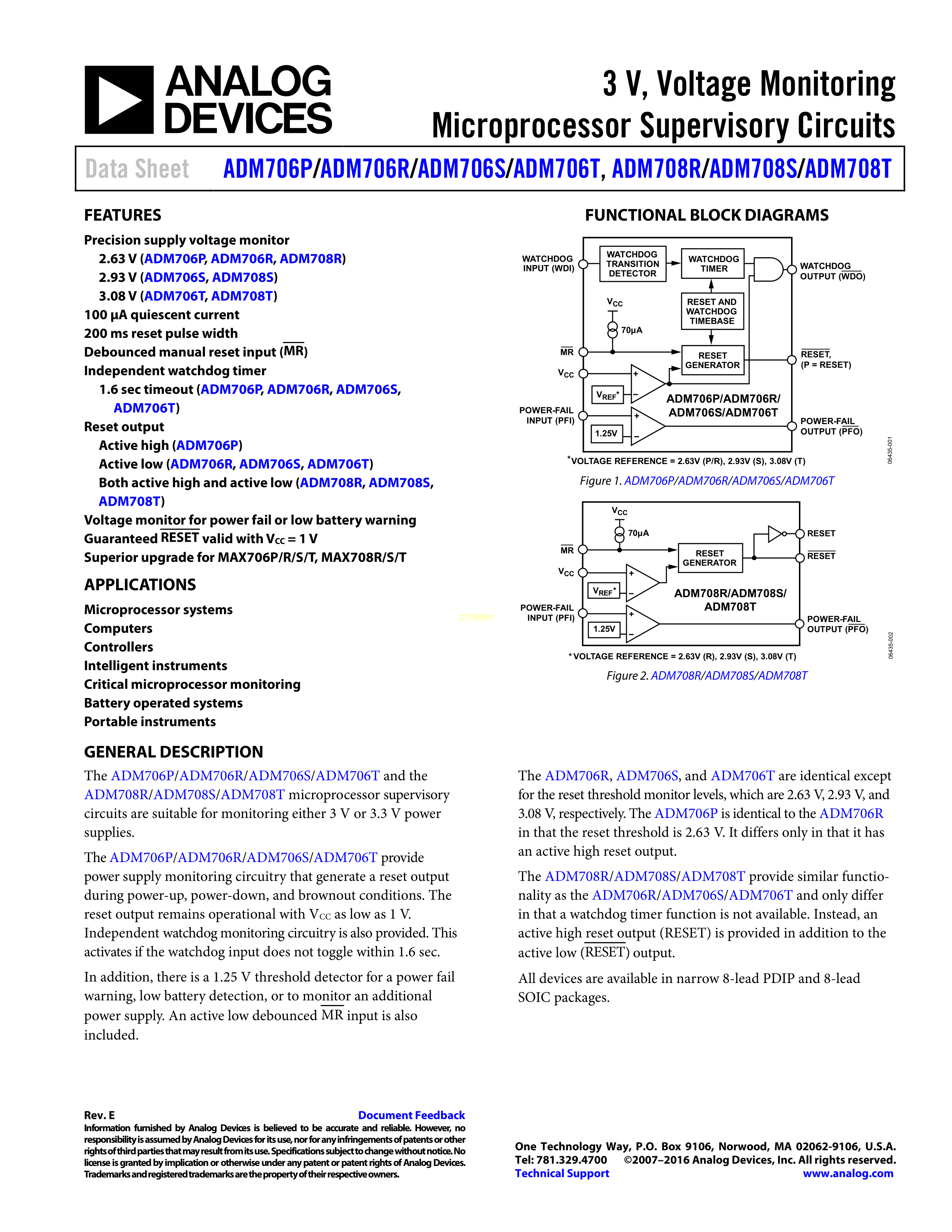 ADM708SARZ-REEL数据手册SOIC-8封装ADI(亚德诺)-LINEARPDF规格书,中