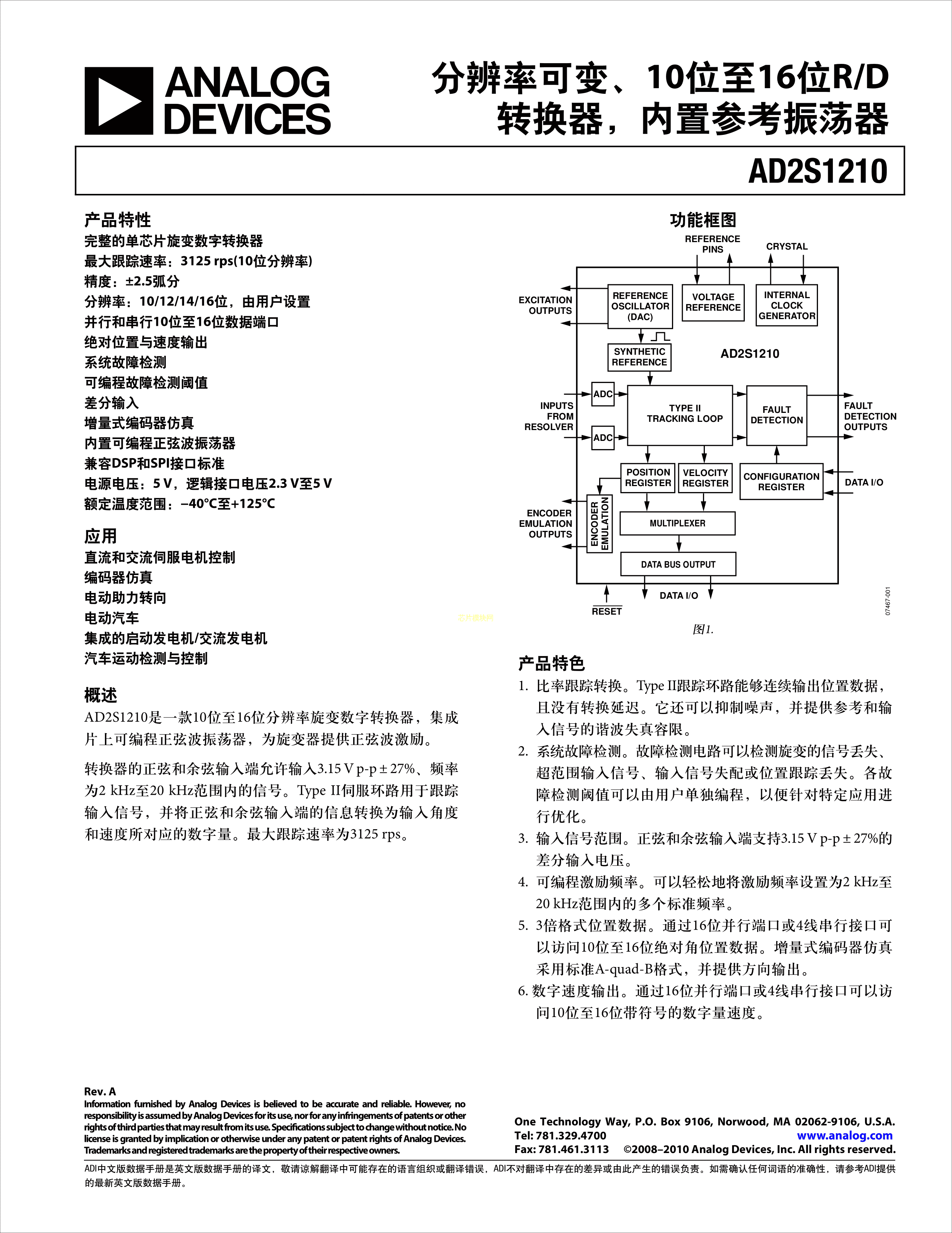 AD2S1210WDSTZ数据手册LQFP-48封装ADI(亚德诺)-LINEARPDF规格书,中英