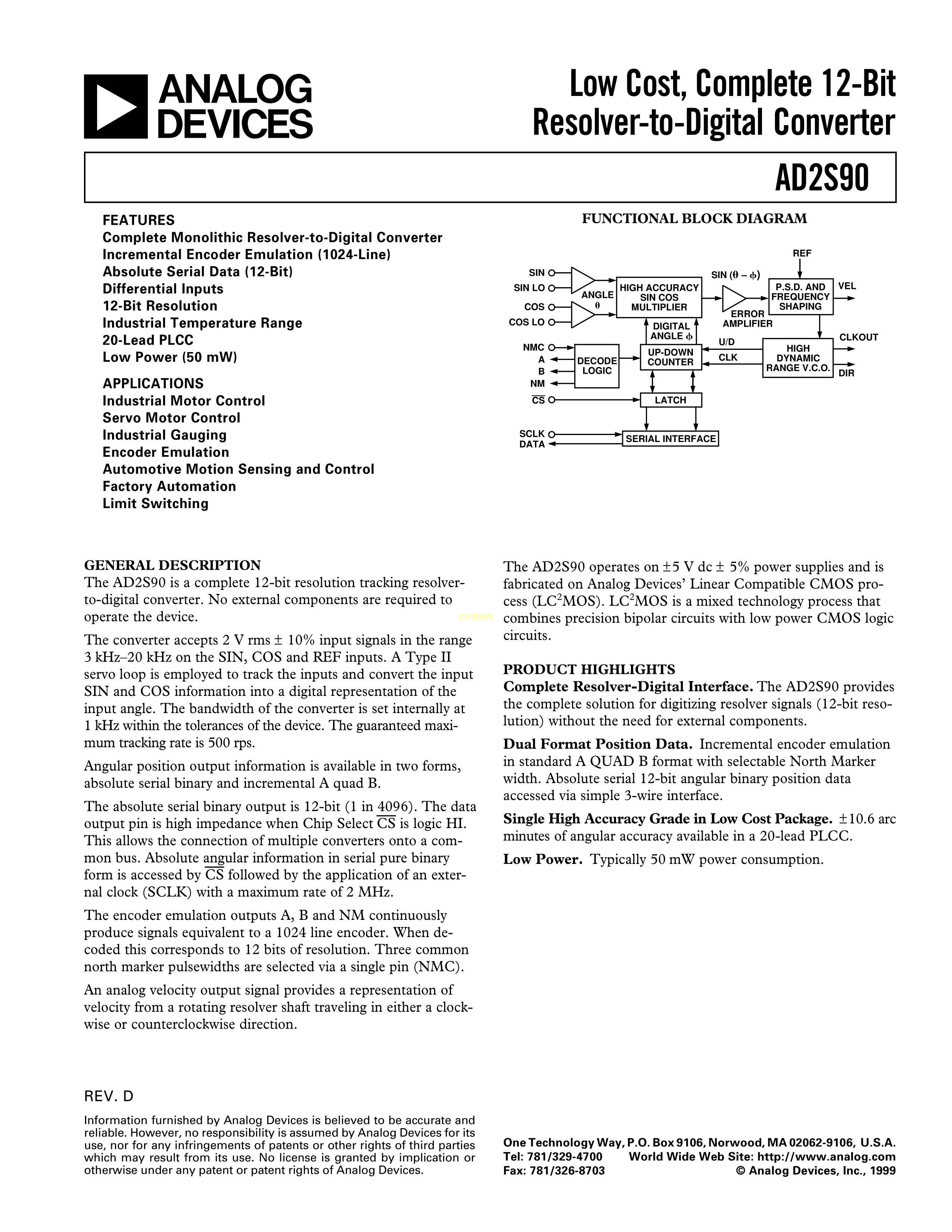 AD2S90APZ数据手册PLCC-20封装ADI(亚德诺)-LINEARPDF规格书,中英文下载