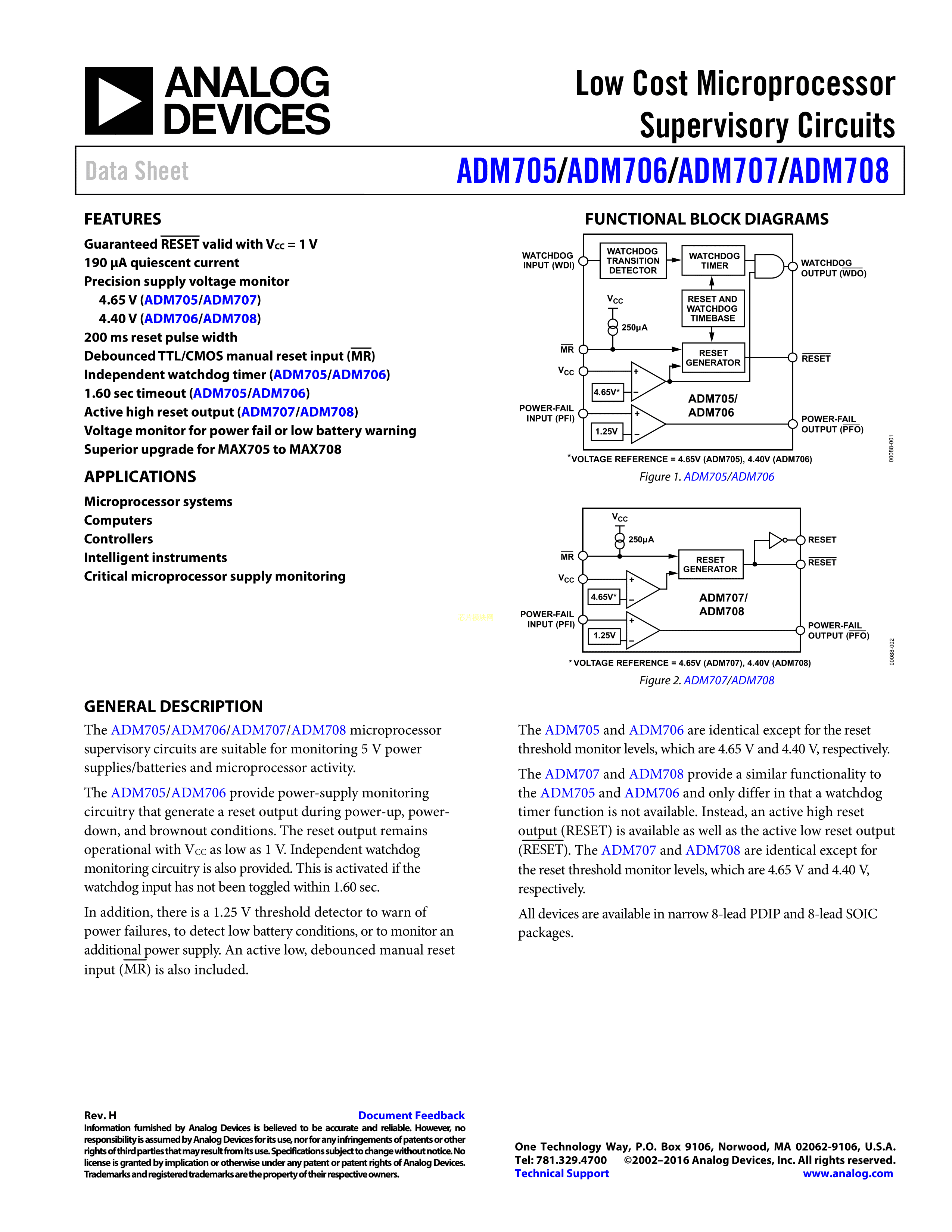 ADM708TARZ-REEL数据手册SOIC-8封装ADI(亚德诺)-LINEARPDF规格书,中