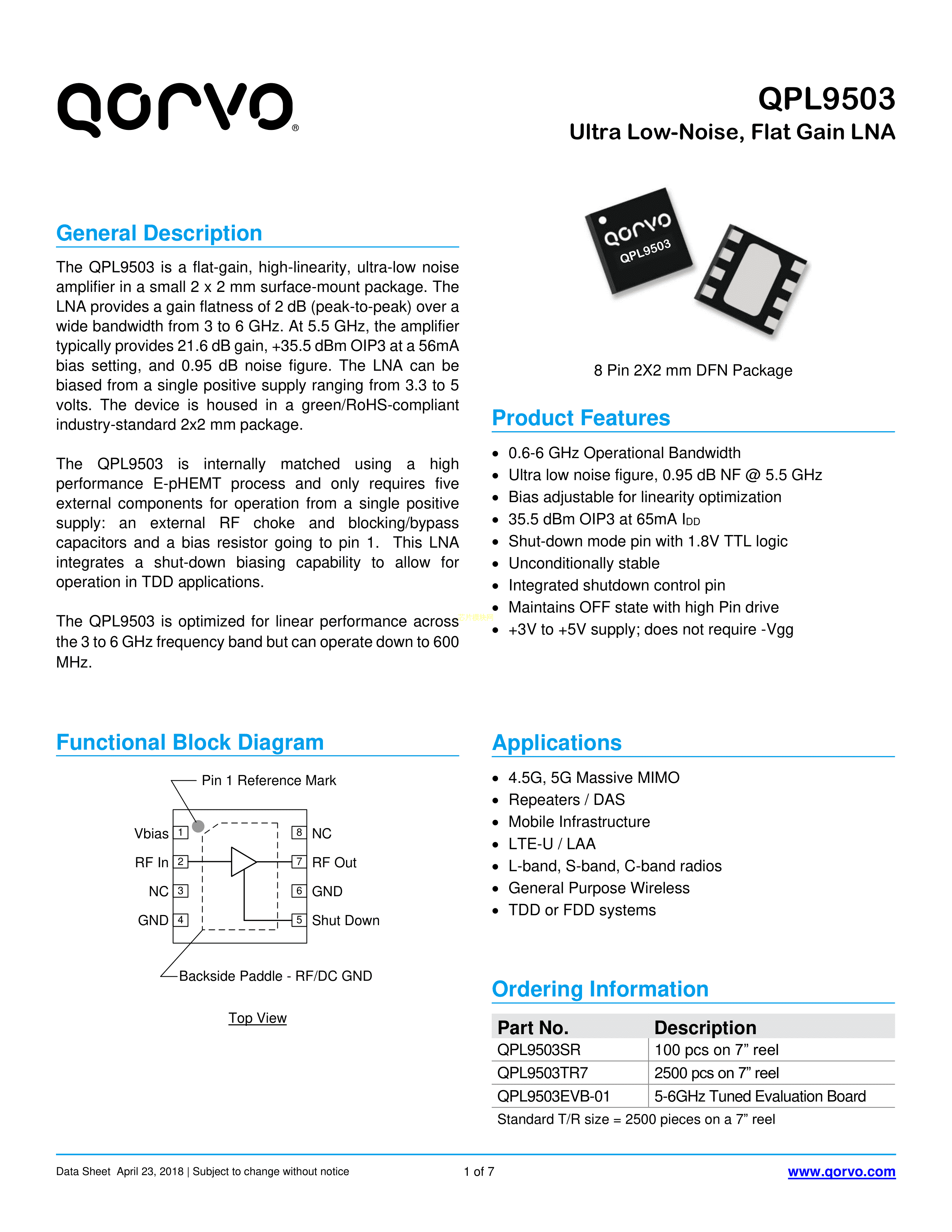 QPL9503TR7数据手册DFN-8封装QorvoPDF规格书,中英文下载