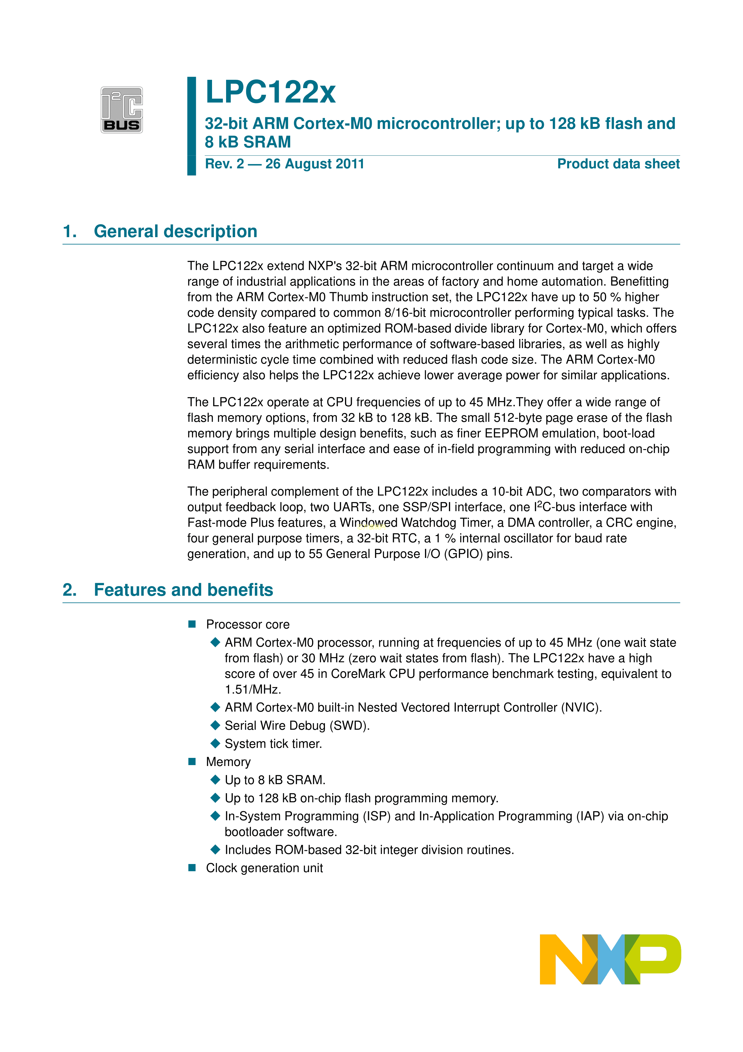 LPC1227FBD64-3011数据手册LQFP-64_10x10x05P封装NXP(恩智浦)PD