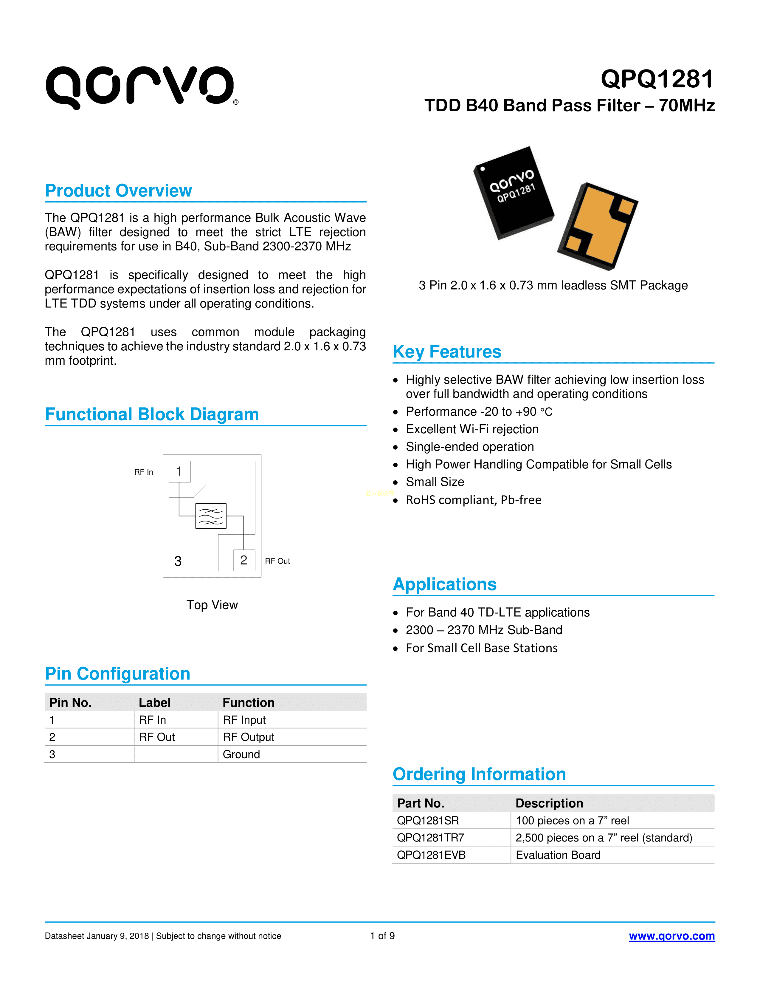 QPQ1281SR数据手册SMT-3封装QorvoPDF规格书,中英文下载