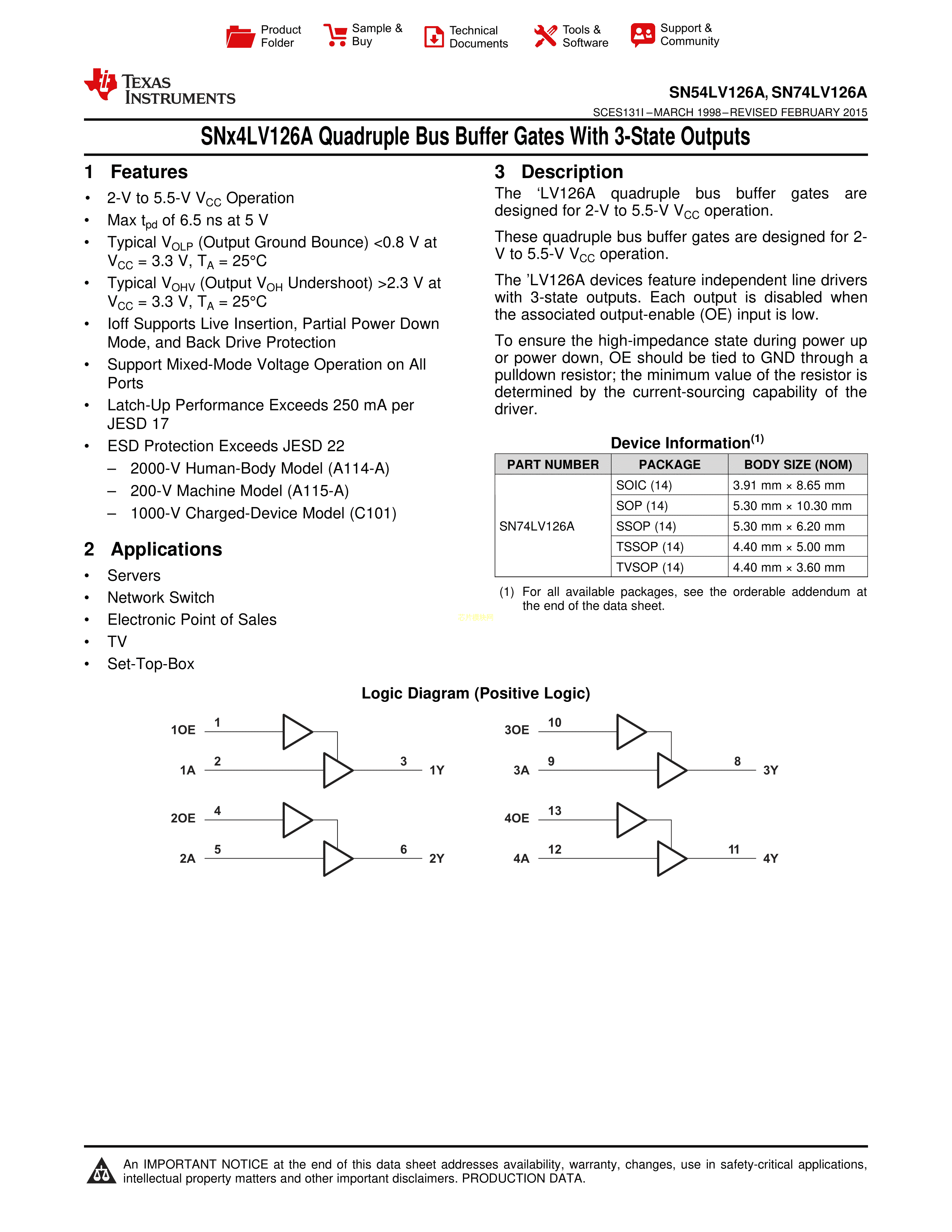 SN74LV126ADR数据手册SOIC-14_150mil封装TI(德州仪器)PDF规格书,中英文