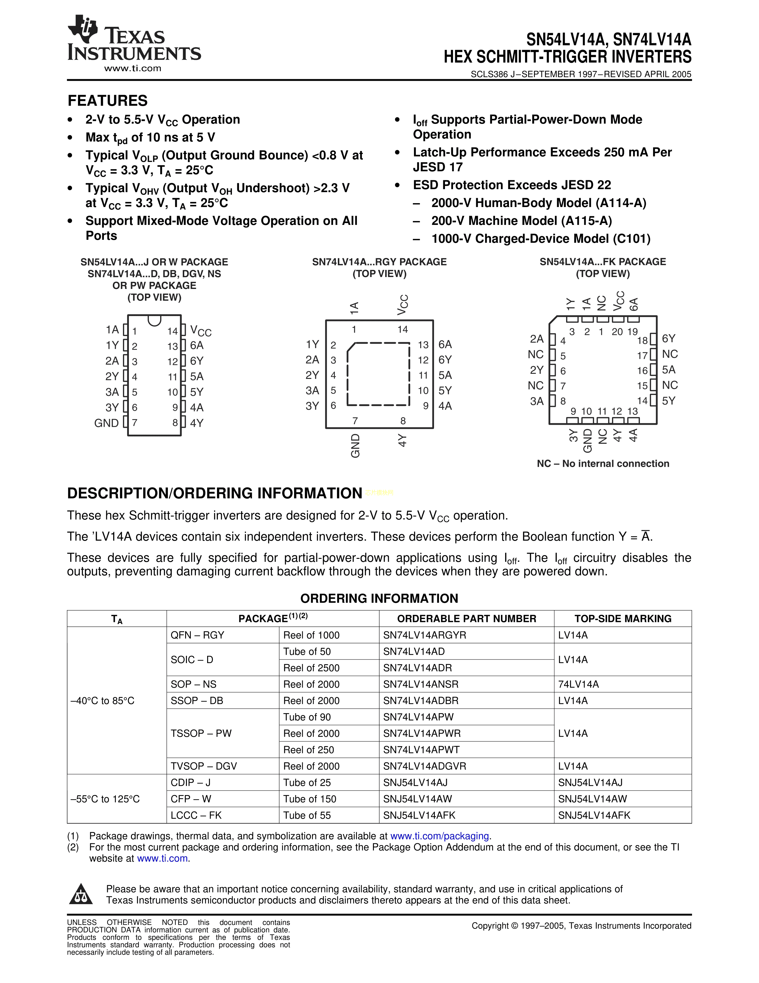 SN74LV14APWR数据手册TSSOP-14封装TI(德州仪器)PDF规格书,中英文下载