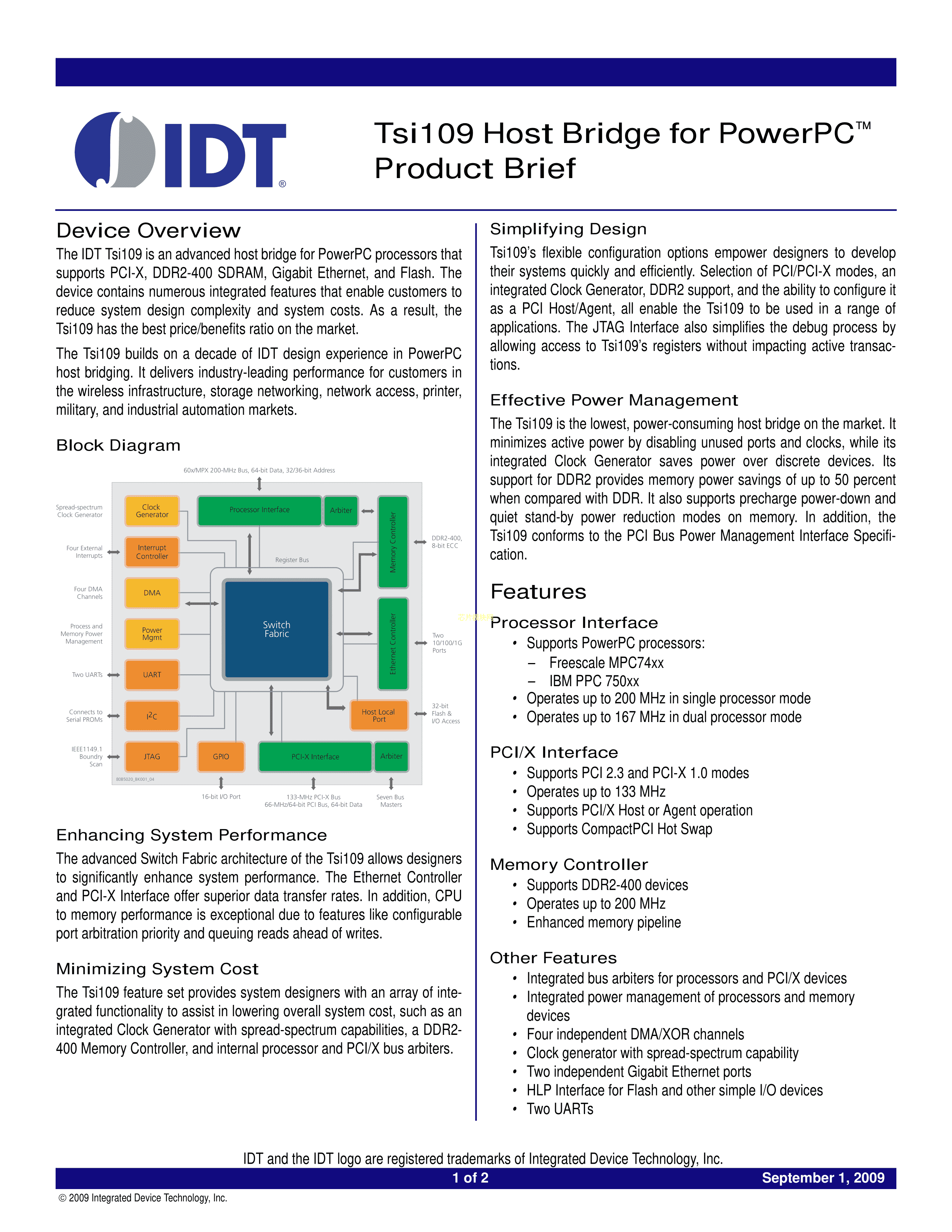 TSI109-200ILY数据手册FCBGA-1023(33x33)封装RENESAS(瑞萨)-ID