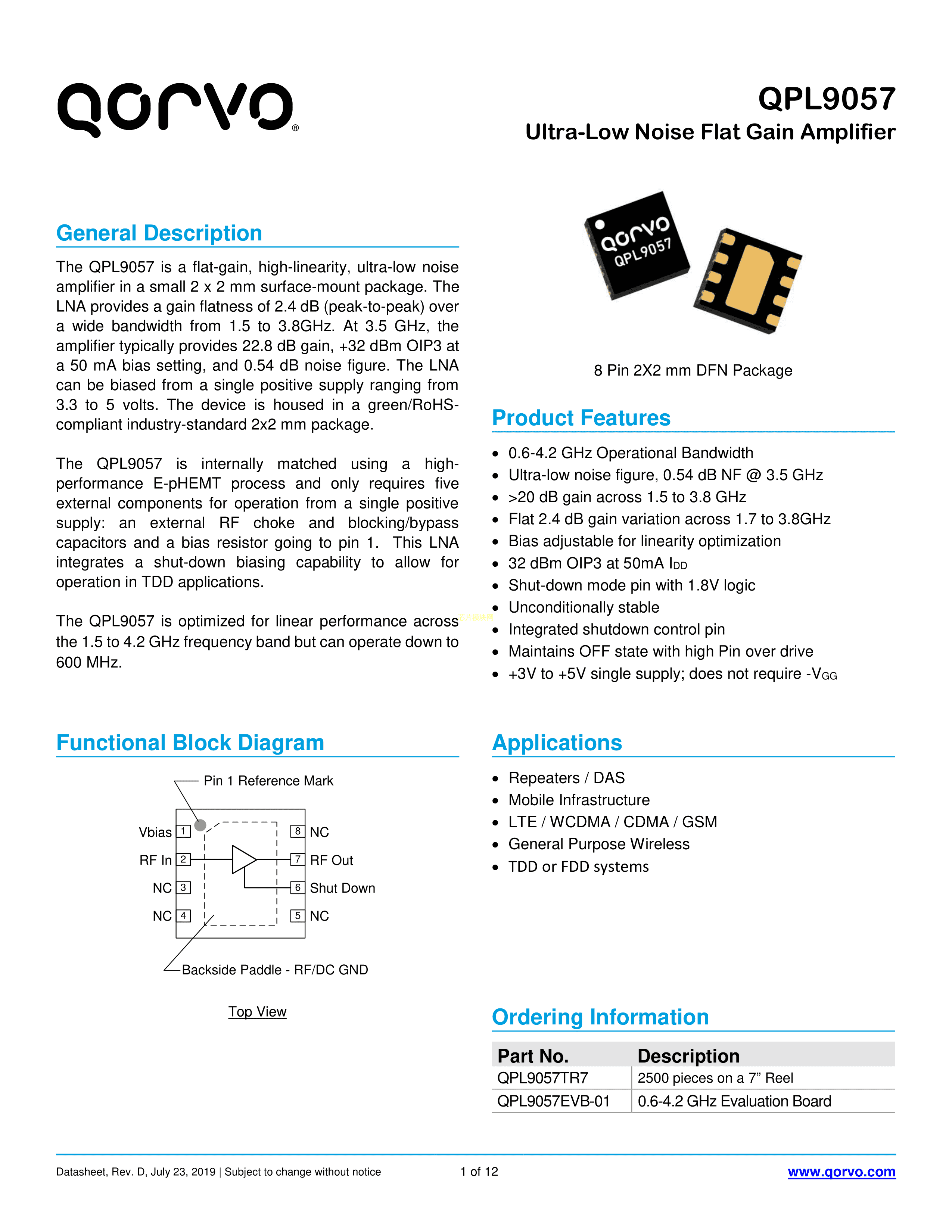 QPL9057TR7数据手册DFN-8封装QorvoPDF规格书,中英文下载
