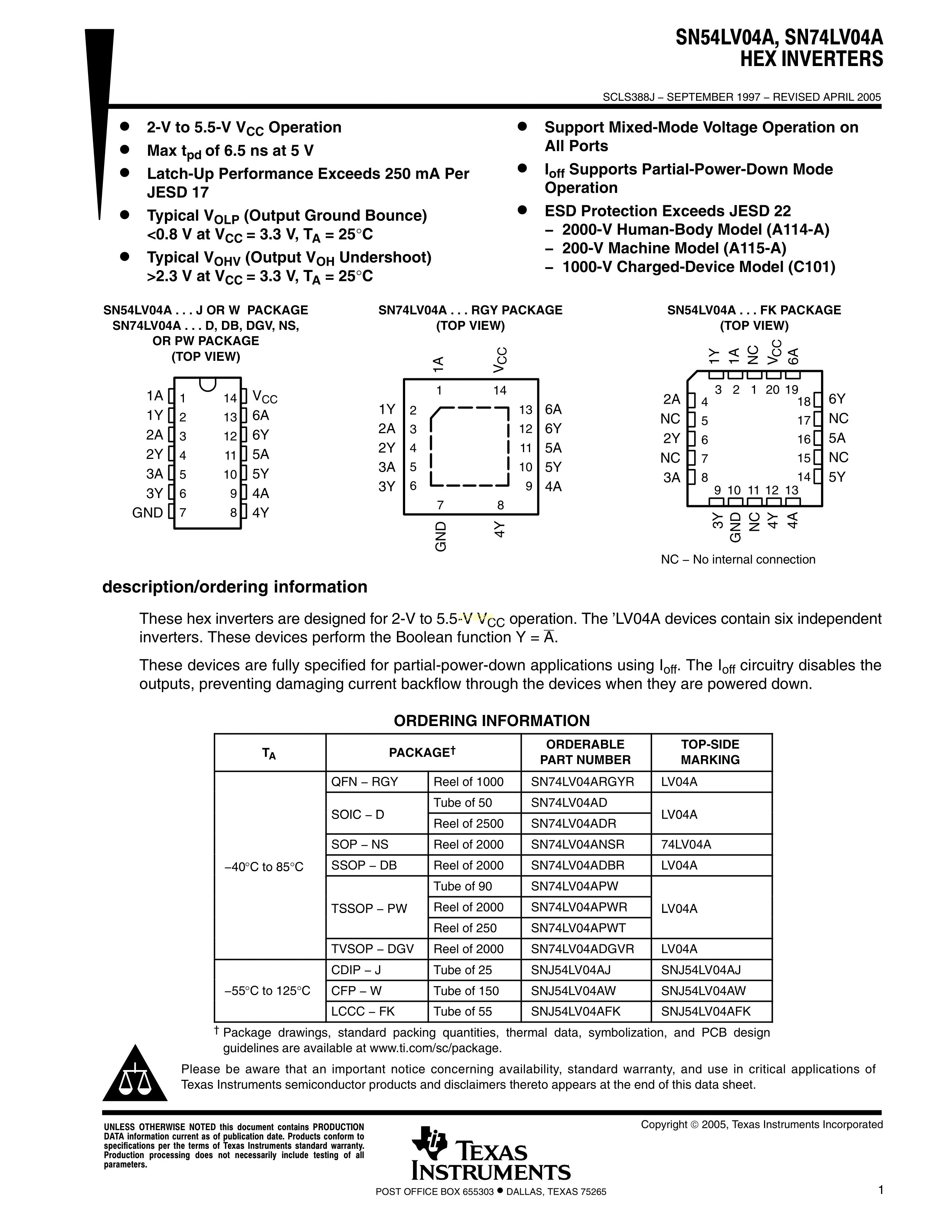 SN74LV04ADBR数据手册SSOP-14_53mm_065P封装TI(德州仪器)PDF规格书,