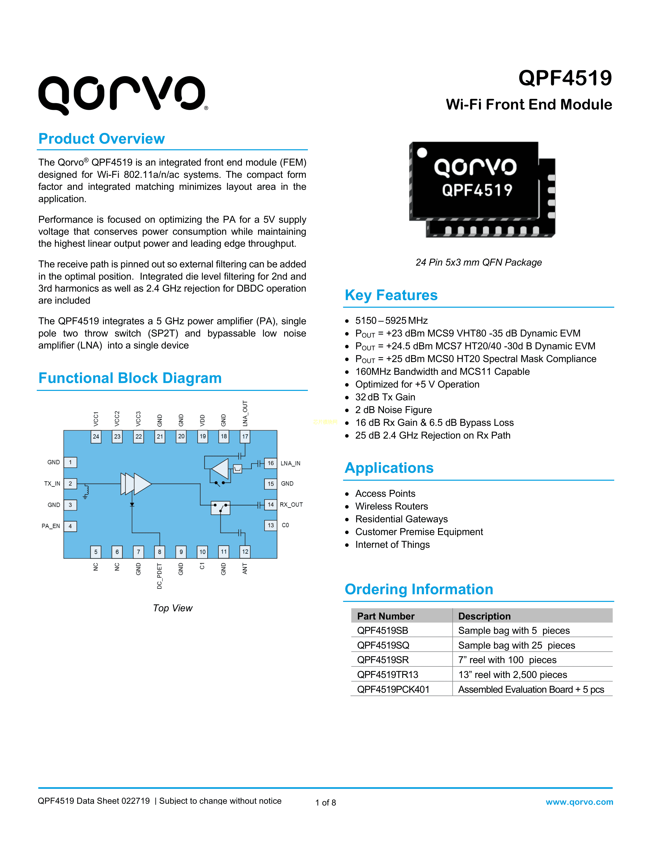 QPF4519SR数据手册QFN-24封装QorvoPDF规格书,中英文下载