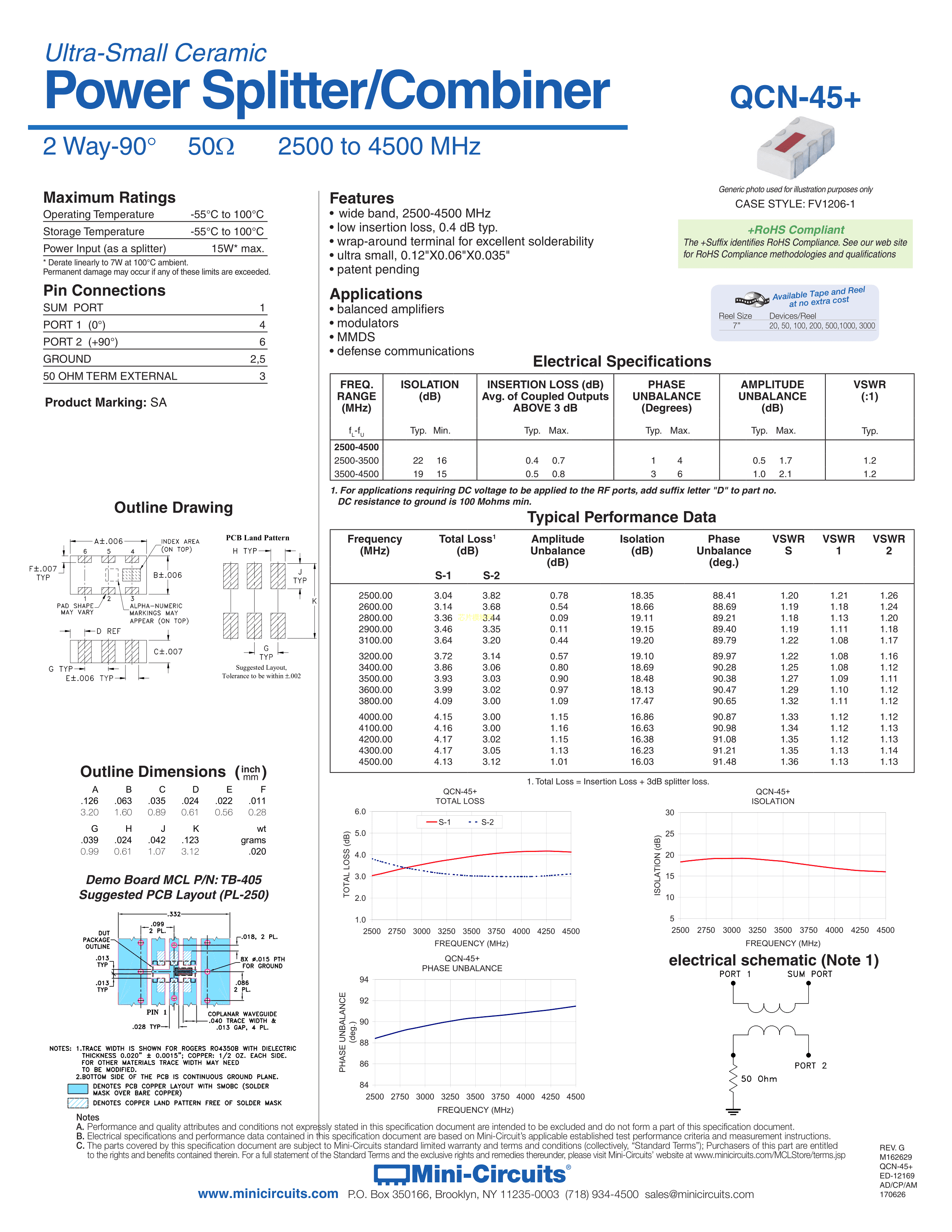 QCN-45+数据手册SMD封装Mini-CircuitsPDF规格书,中英文下载