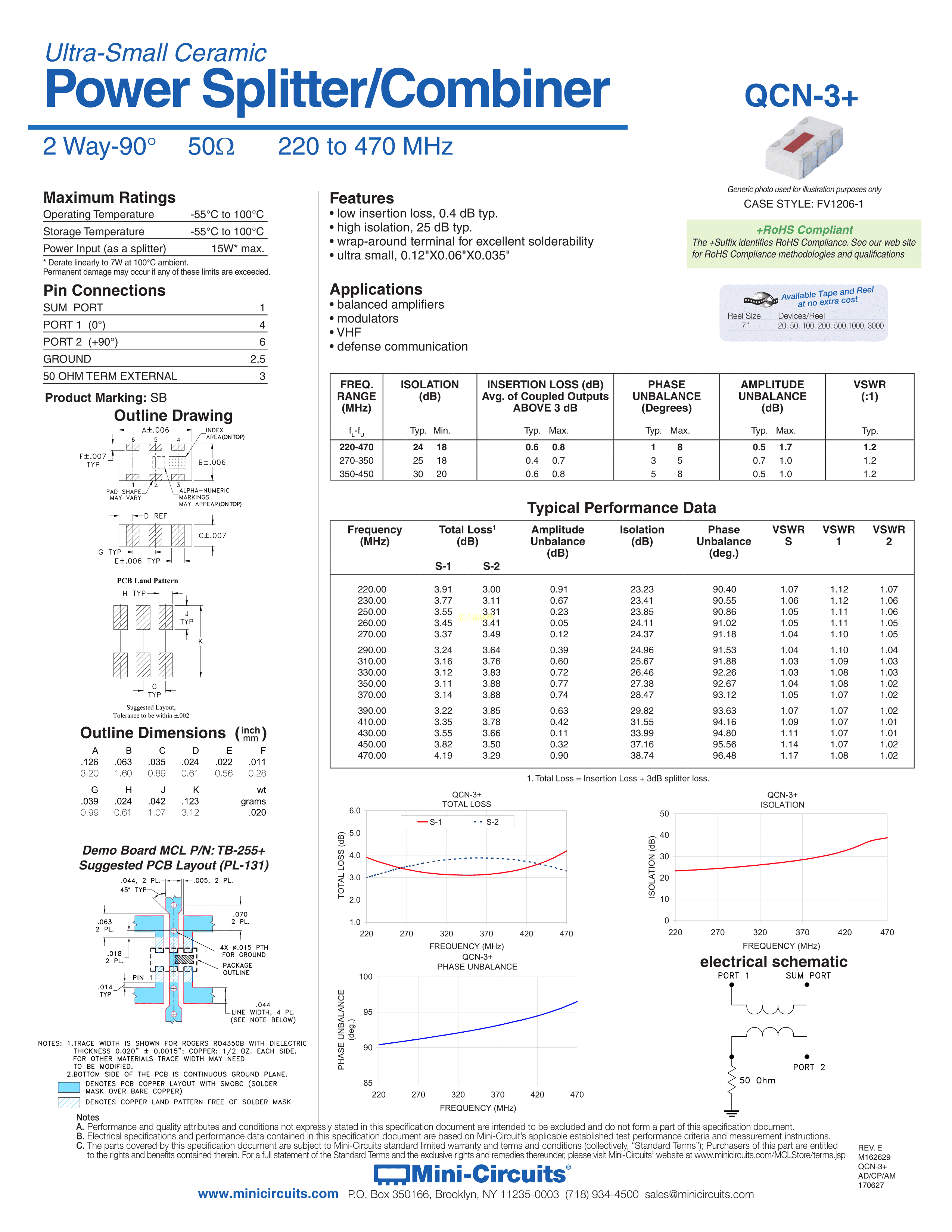 QCN-3+数据手册SMD封装Mini-CircuitsPDF规格书,中英文下载