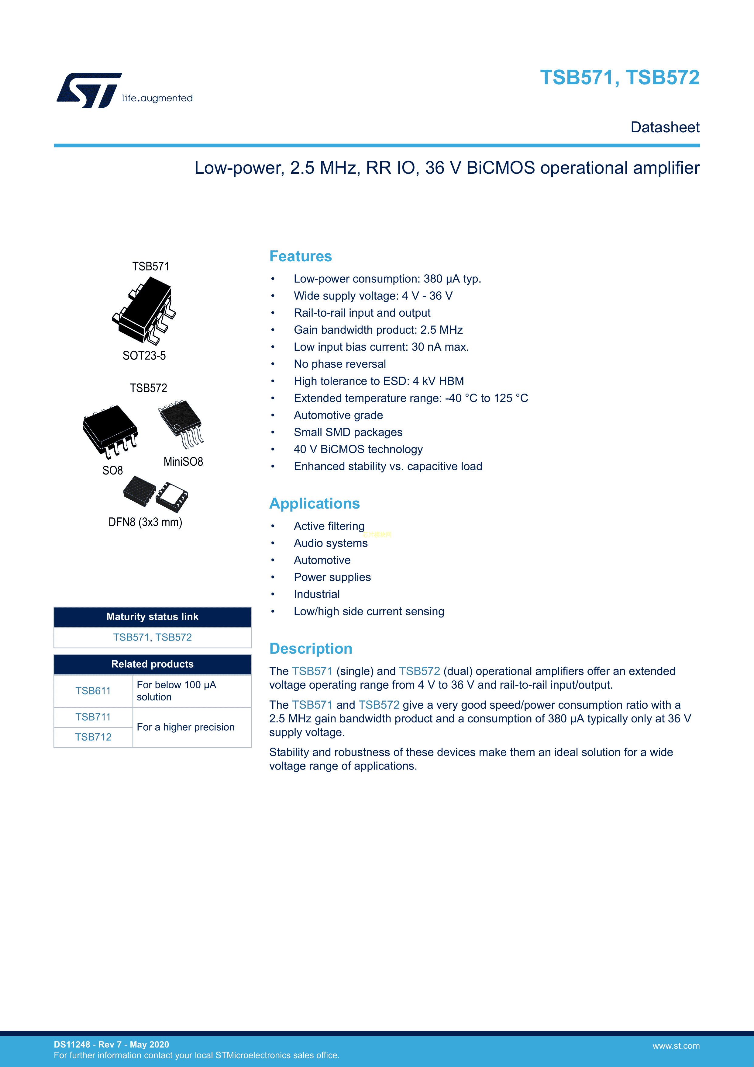 TSB572IDT数据手册SO-8封装ST(意法半导体)PDF规格书,中英文下载
