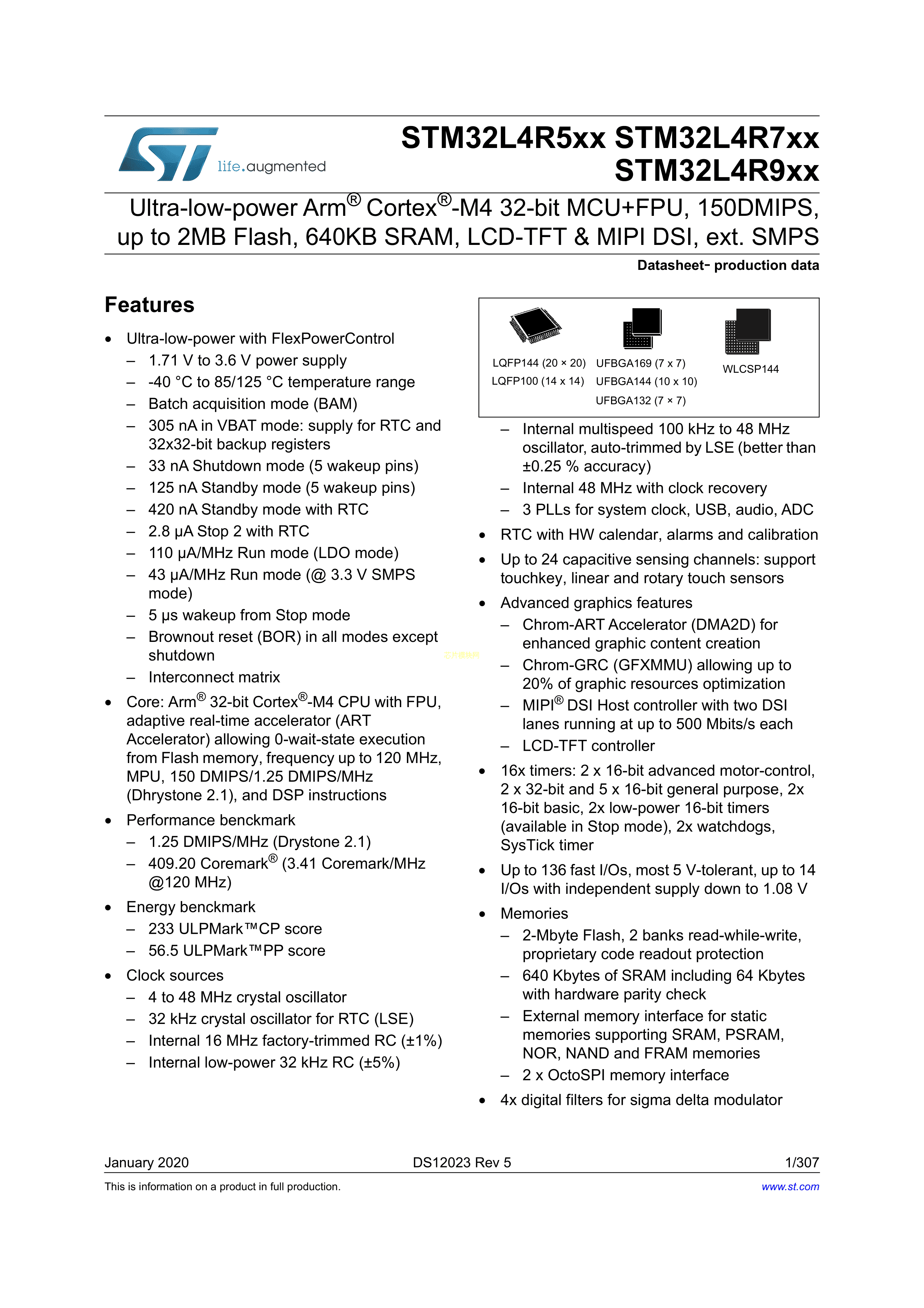STM32L4R9AGI6数据手册UFBGA-169(7x7)封装ST(意法半导体)PDF规格书,中