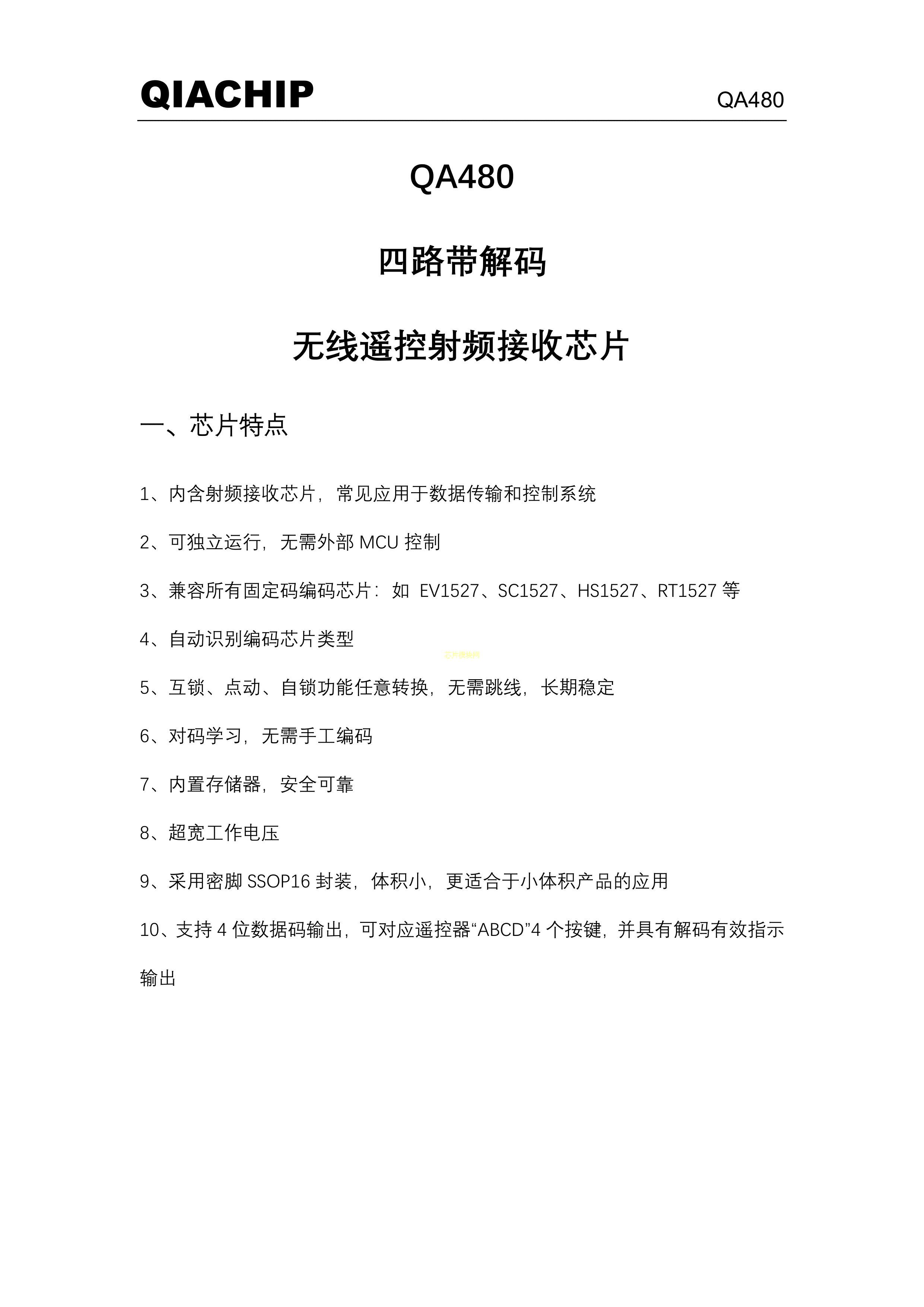QA480数据手册SSOP-16封装QIACHIP(七艾)PDF规格书,中英文下载