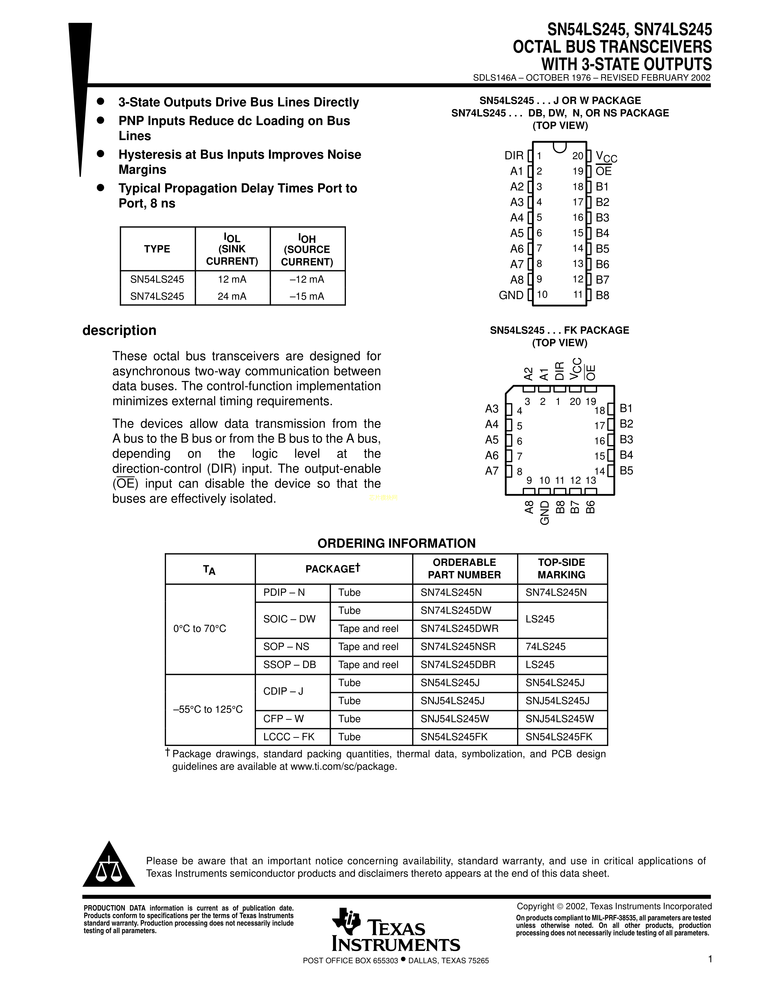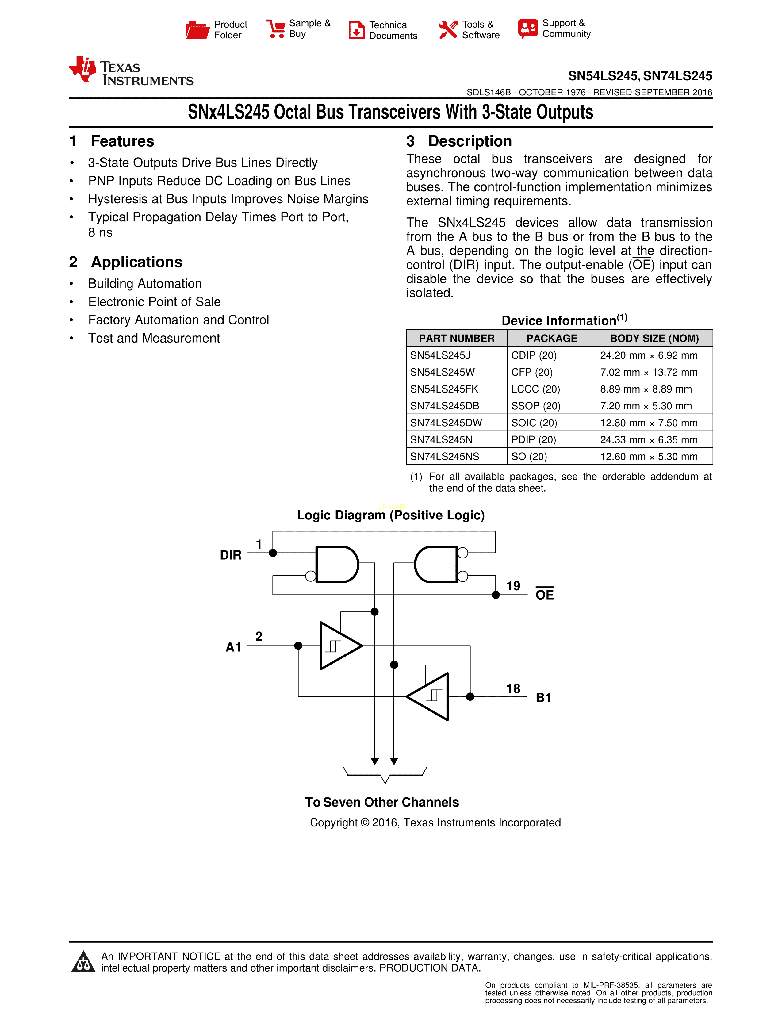 SN74LS245NSR数据手册SOP-20_208mil封装TI(德州仪器)PDF规格书,中英文下