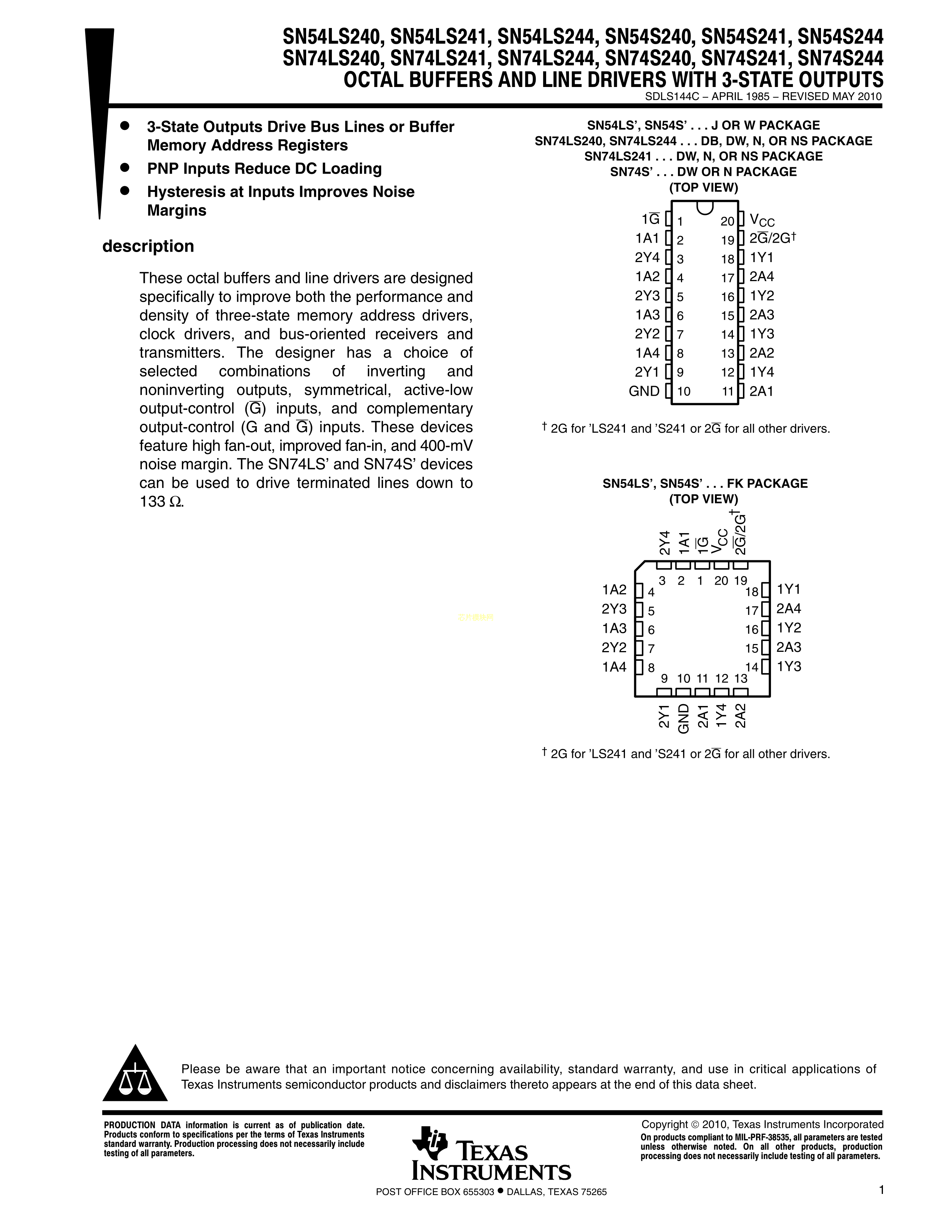SN74LS244NSR数据手册SOP-20_208mil封装TI(德州仪器)PDF规格书,中英文下