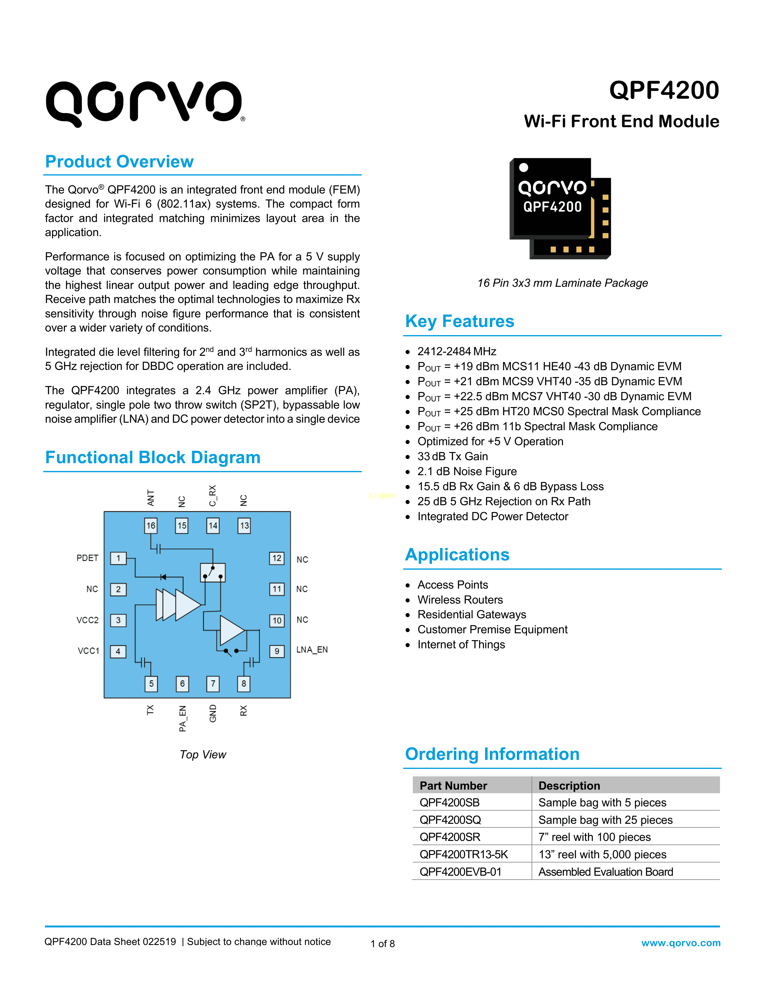 QPF4200SR数据手册Laminate-16封装QorvoPDF规格书,中英文下载