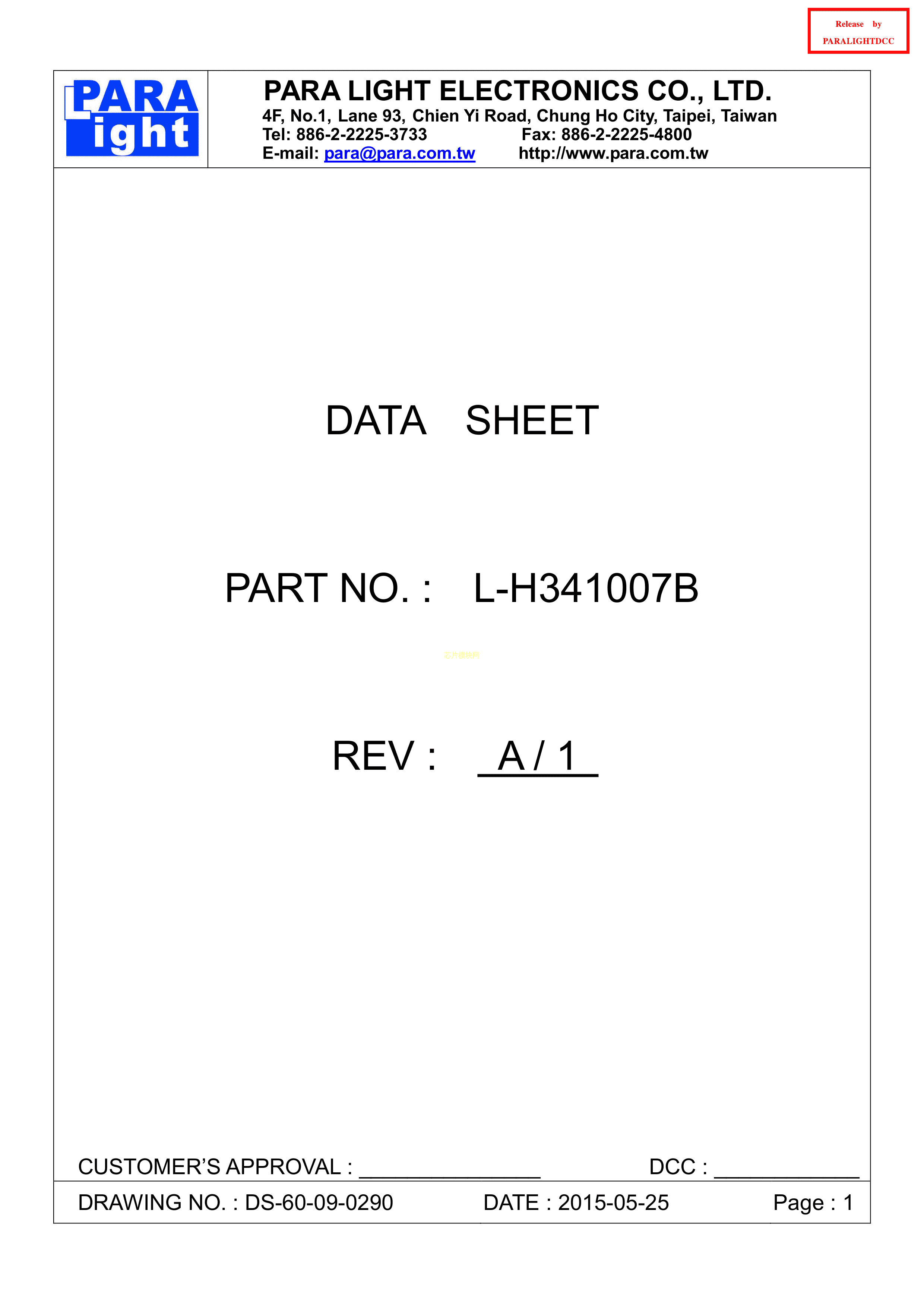 LH341007B数据手册-封装PARALIGHT(台湾光鼎)PDF规格书,中英文下载