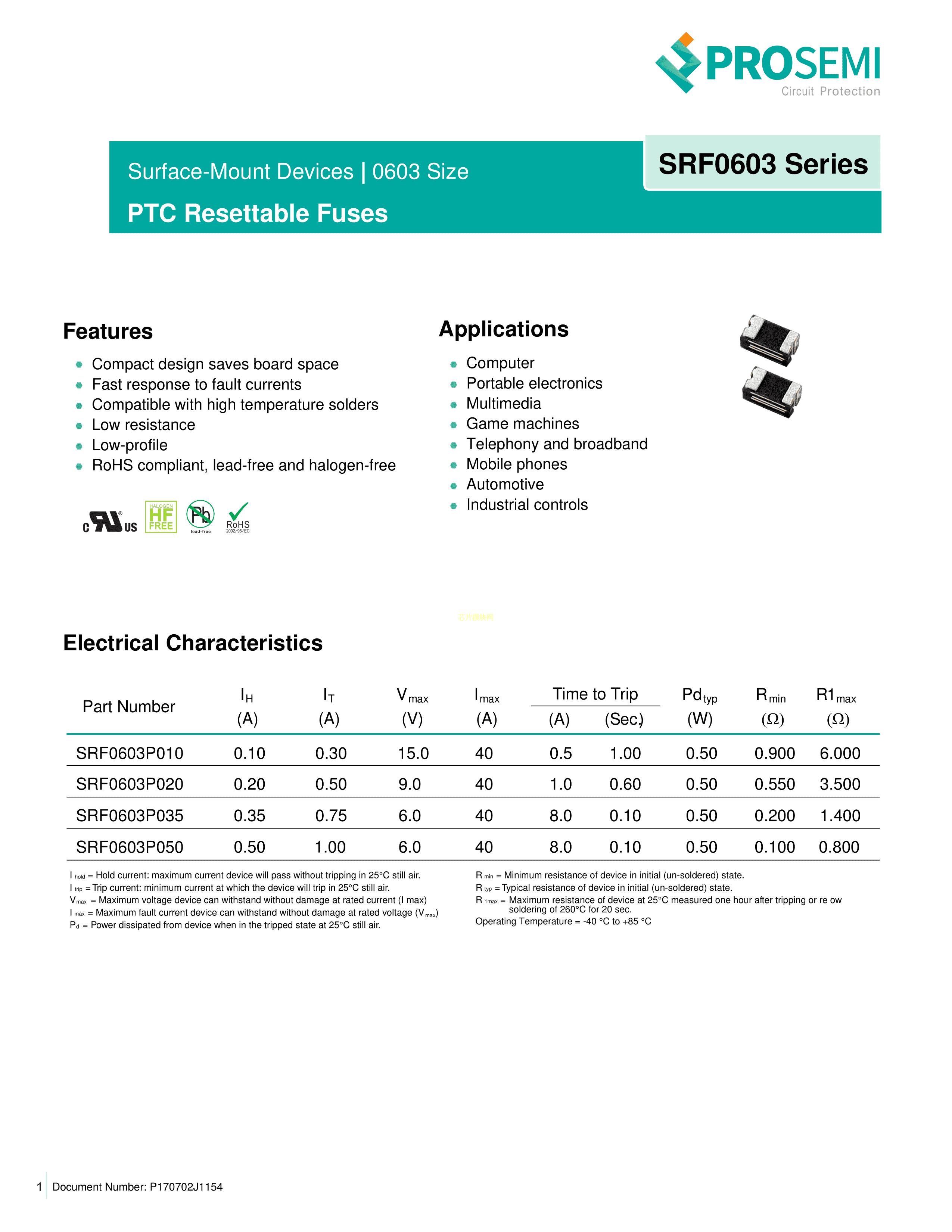 SRF0603P050数据手册SMD1.85x1.05mm封装prosemi(普罗森美)PDF规格书,中英文下载