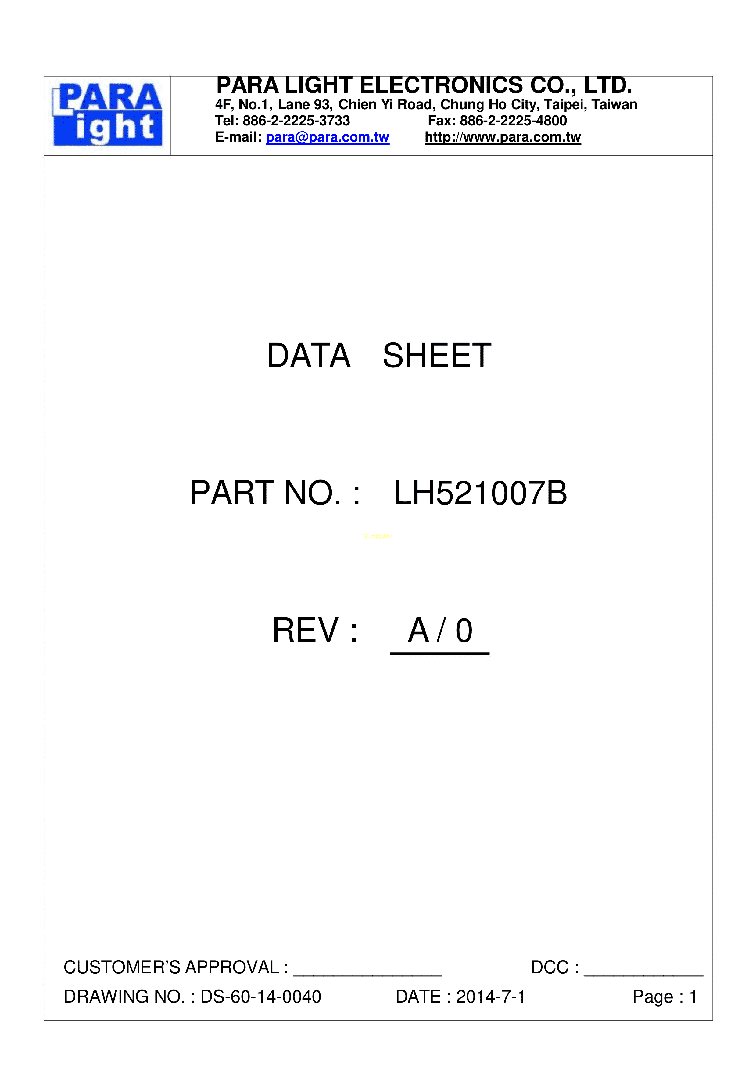LH521007B数据手册-封装PARALIGHT(台湾光鼎)PDF规格书,中英文下载