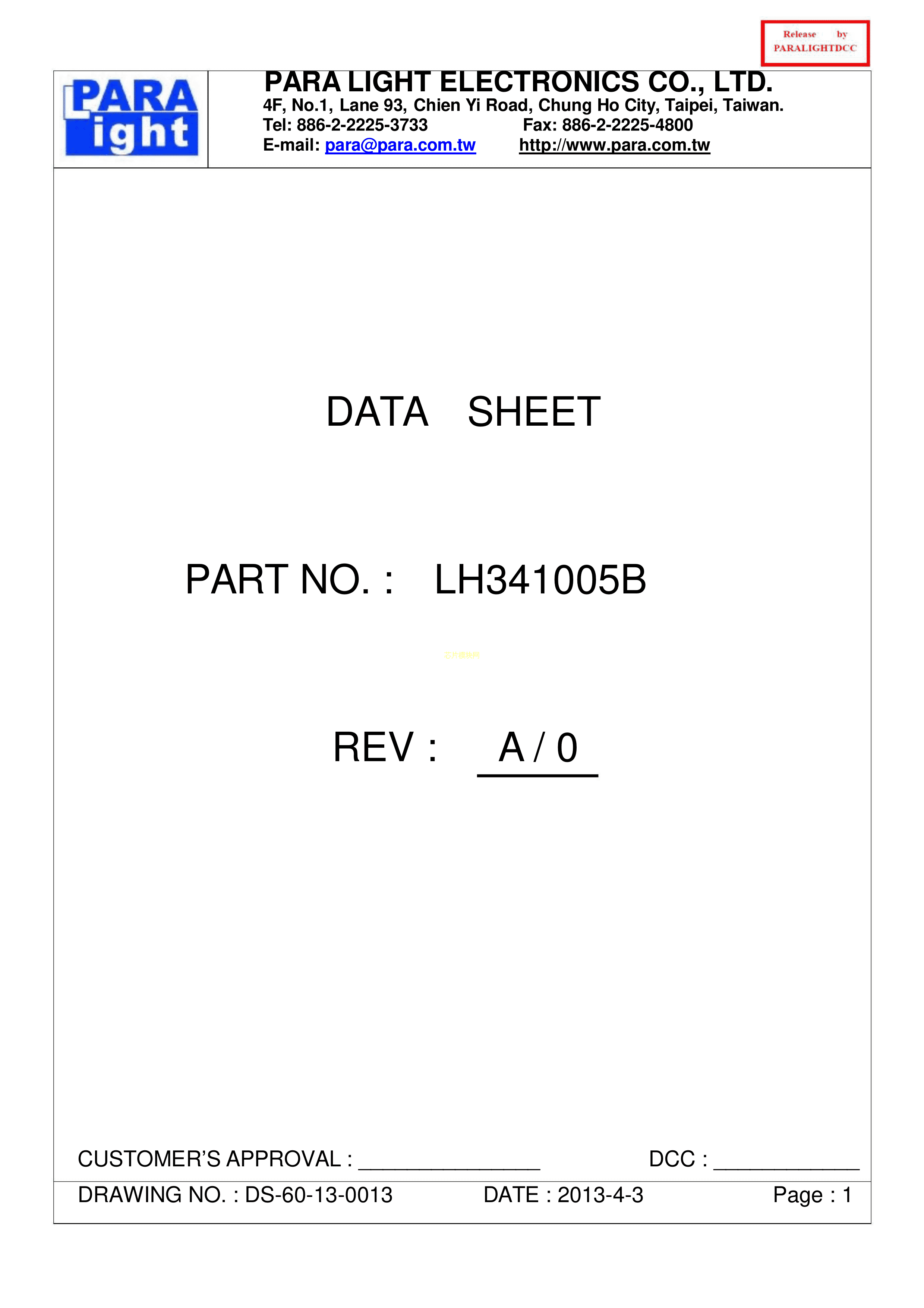 LH341005B数据手册-封装PARALIGHT(台湾光鼎)PDF规格书,中英文下载