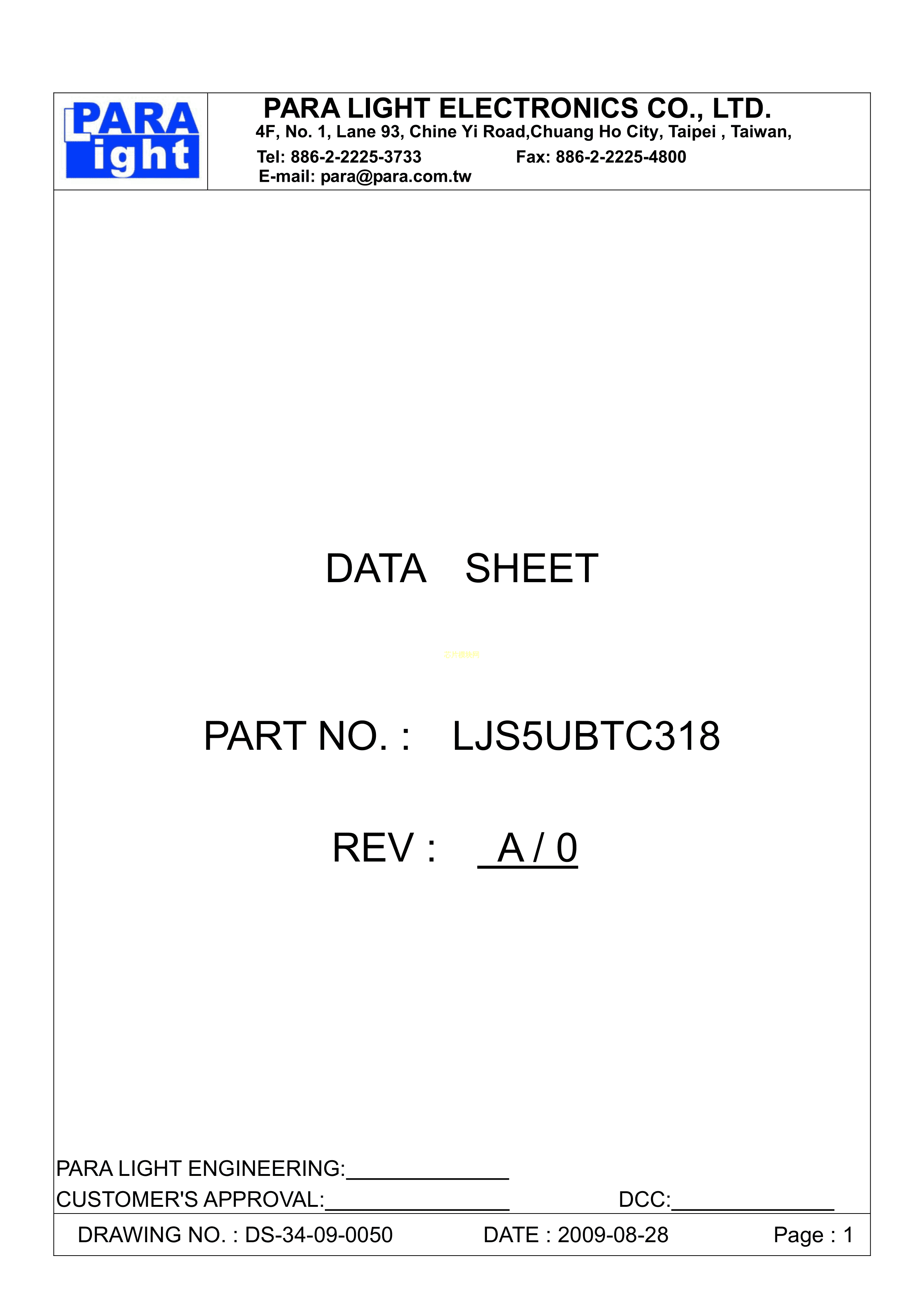 LJS5UBTC318数据手册插件封装PARALIGHT(台湾光鼎)PDF规格书,中英文下载