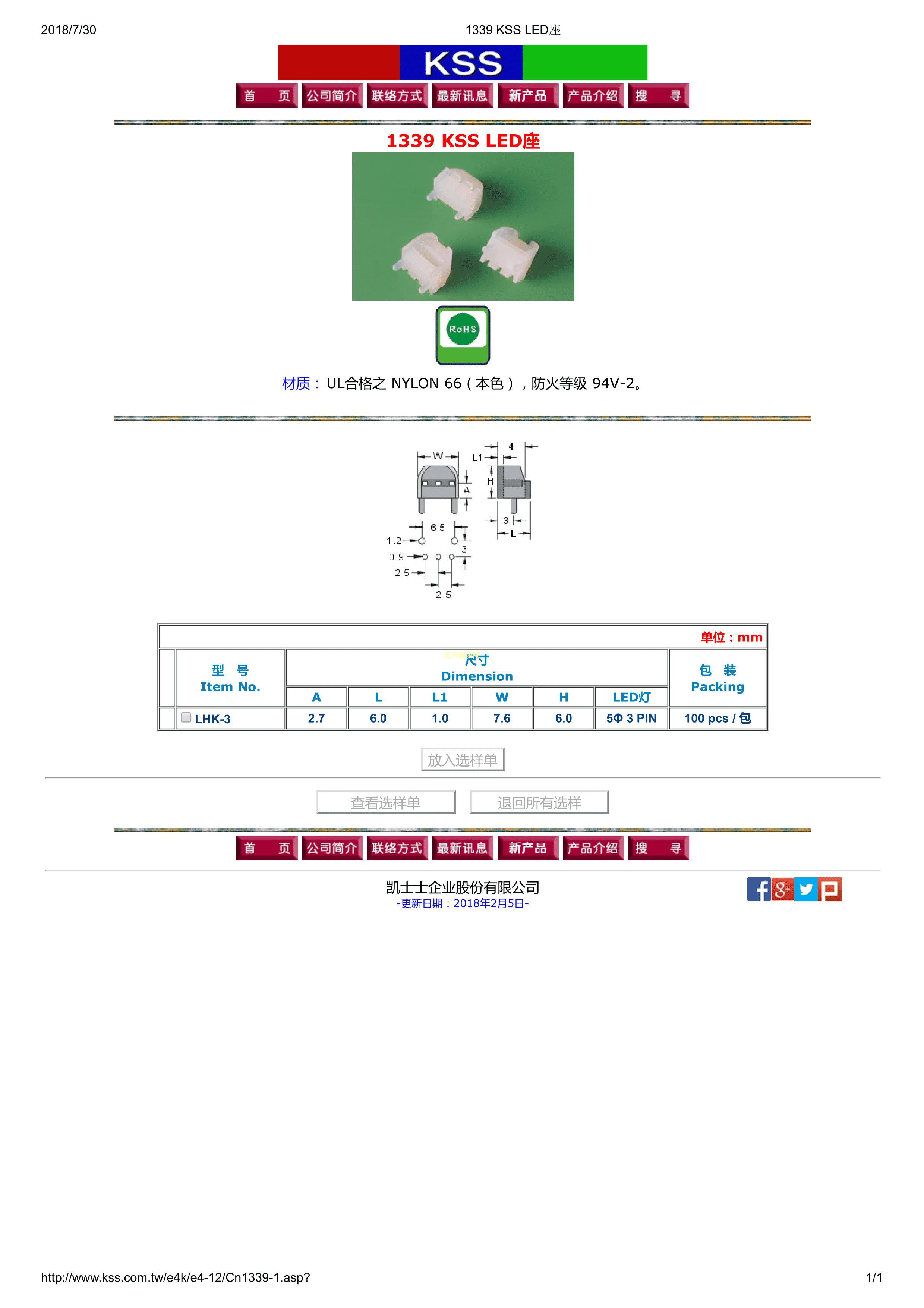 LHK-3数据手册Housing封装KSS(台湾凯士士)PDF规格书,中英文下载