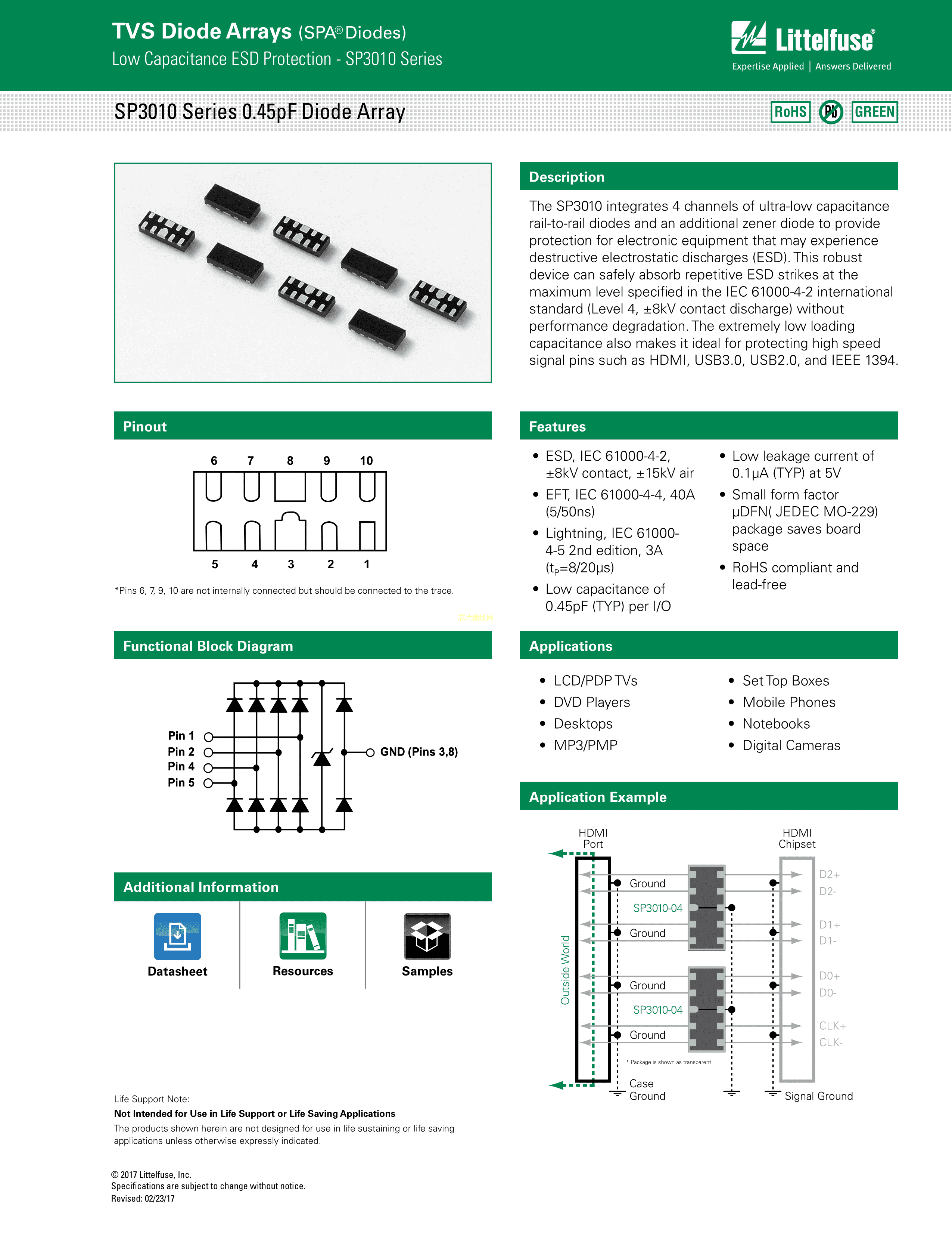 SP3010-04UTG数据手册uDFN-10封装Littelfuse(美国力特)PDF规格书,中英文下载