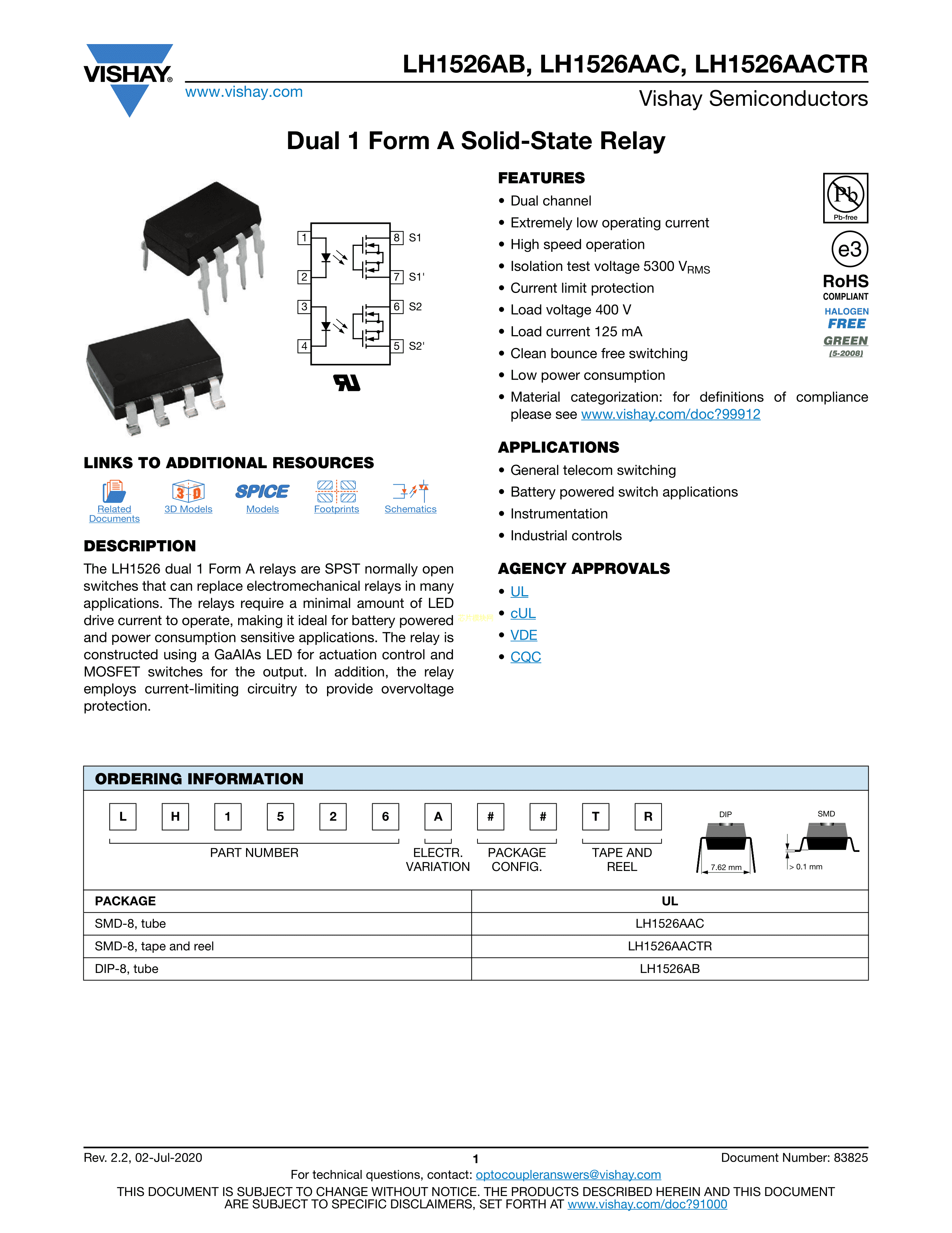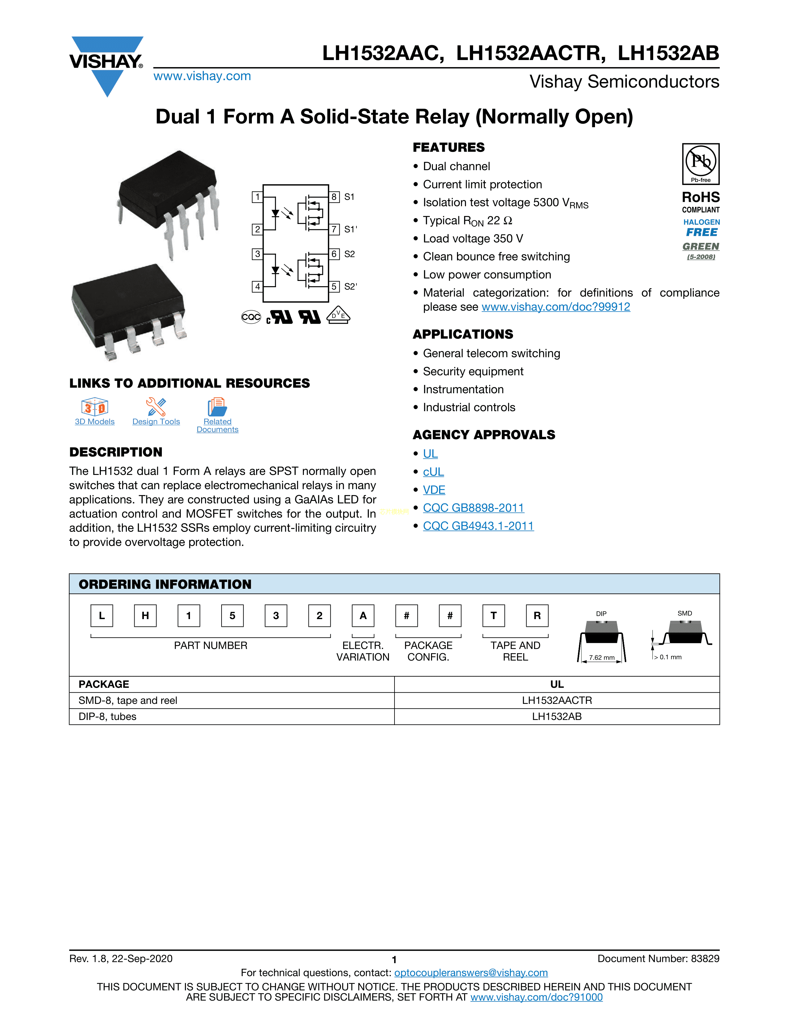 LH1520AACTR数据手册SMD-8封装VISHAY(威世)PDF规格书,中英文下载