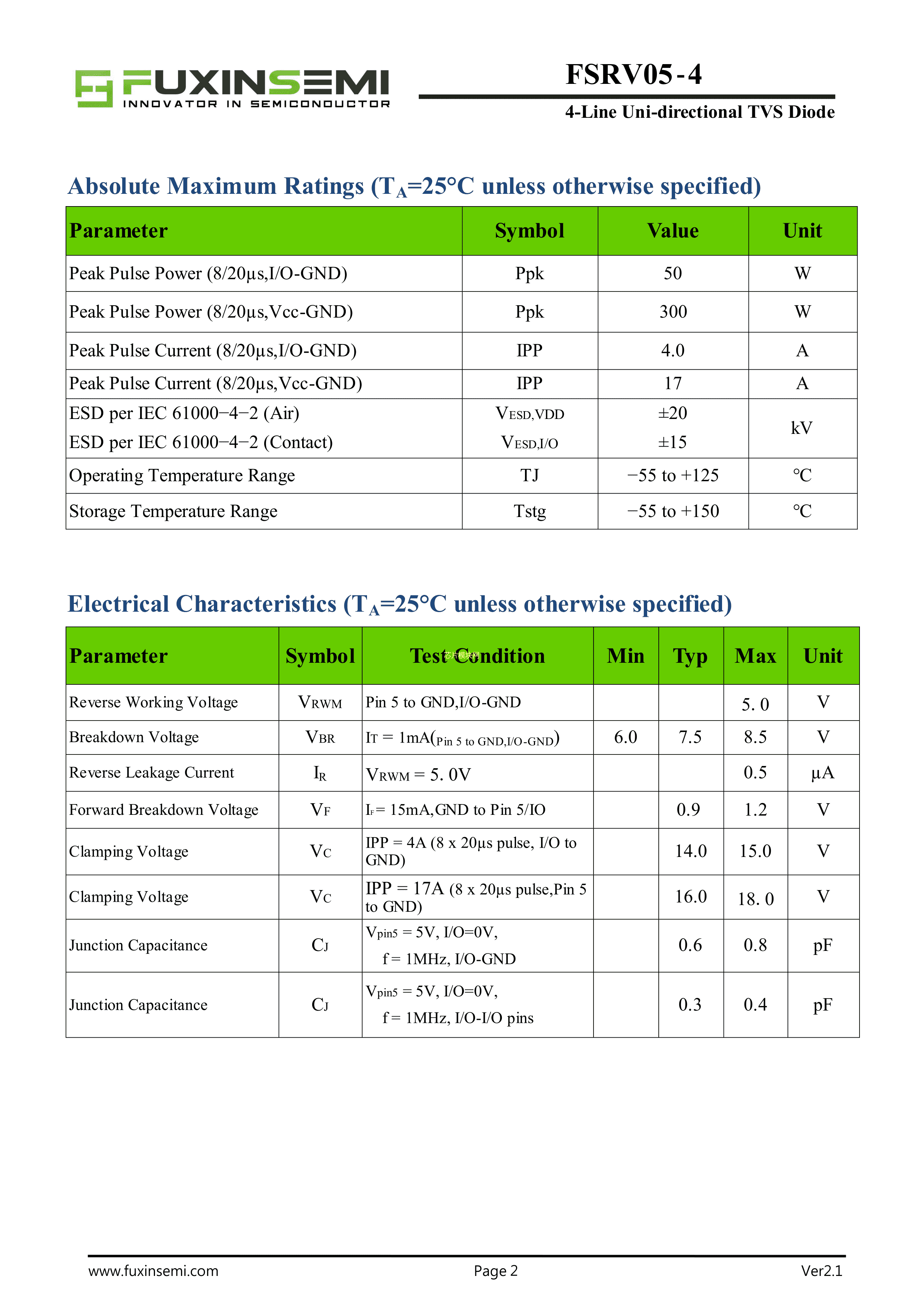 FSRV05-4数据手册SOT-23-6L封装FUXINSEMI(富芯森美)PDF规格书,中英文下载