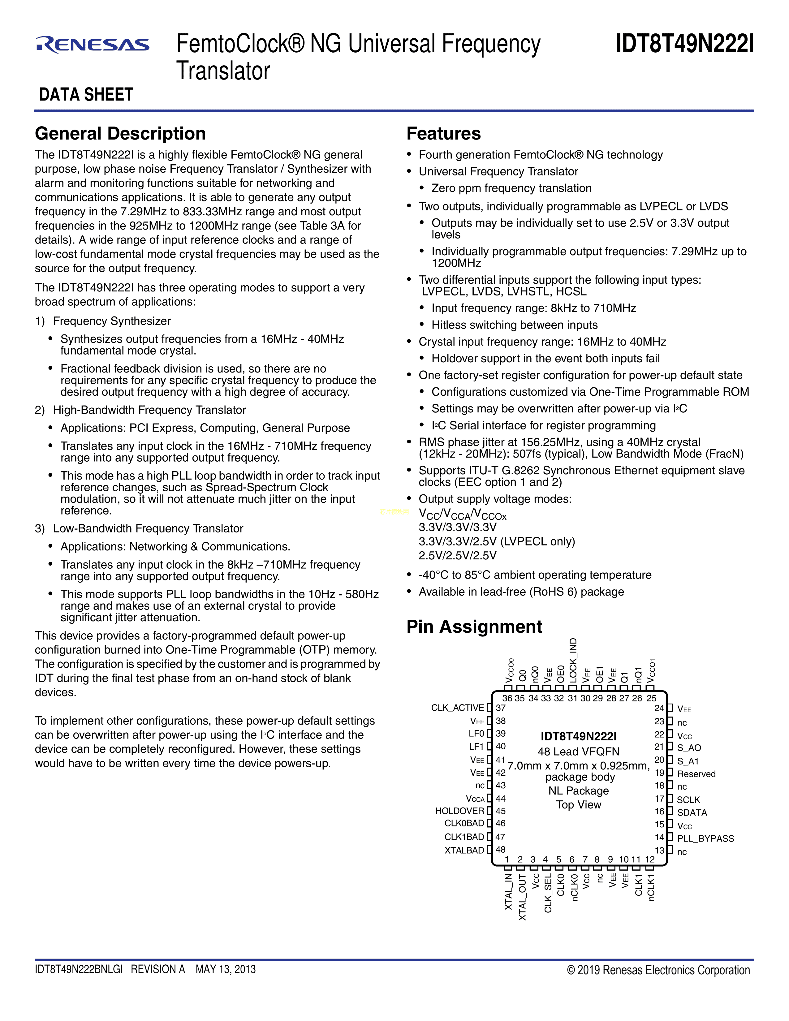 8T49N222B-122NLGI数据手册VQFN-48(7x7)封装RENESAS(瑞萨)-IDTPDF规格书,中英文下载