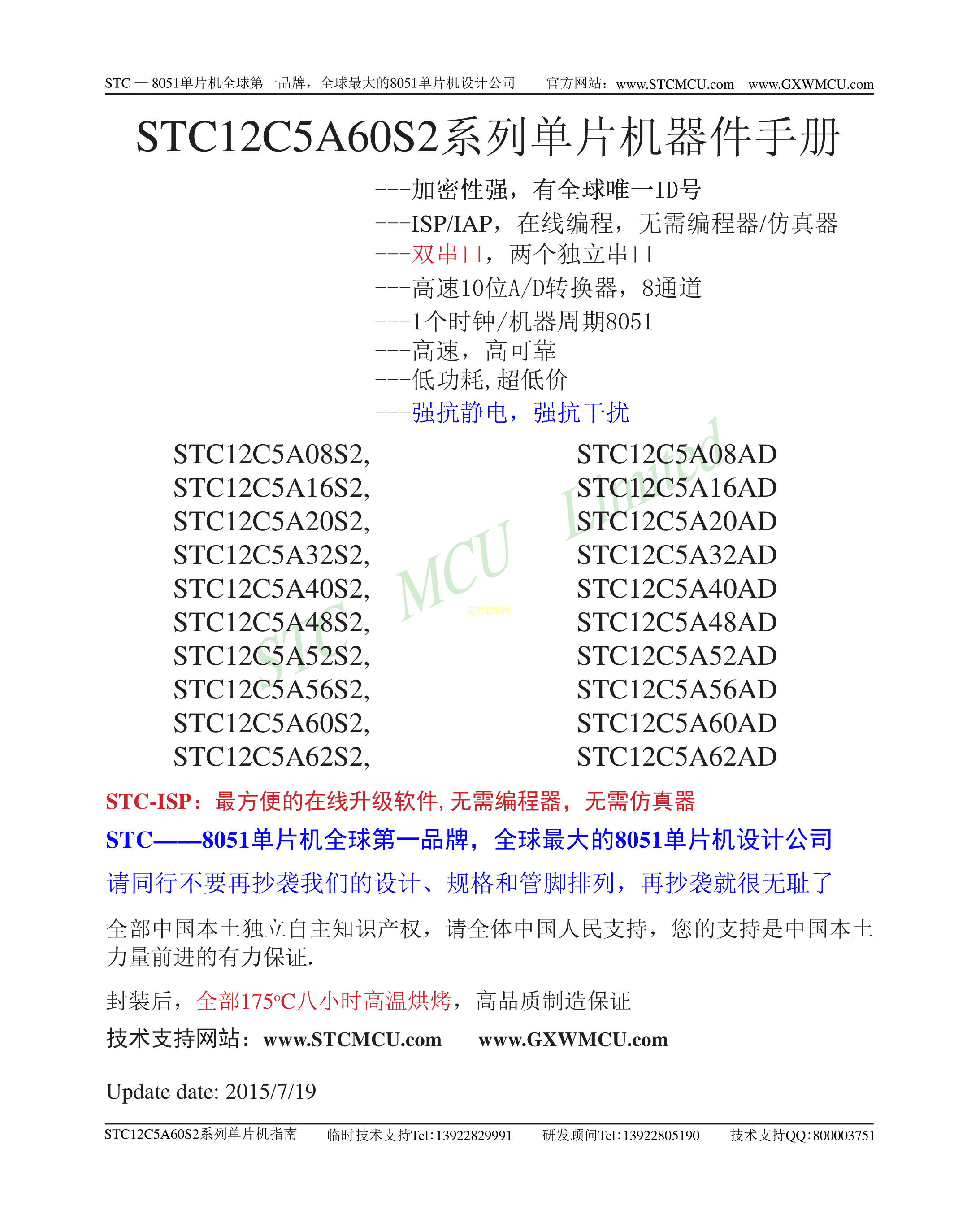STC12C5A32S2-35I-PDIP40数据手册DIP-40封装STC(宏晶)PDF规格书,中英文下载