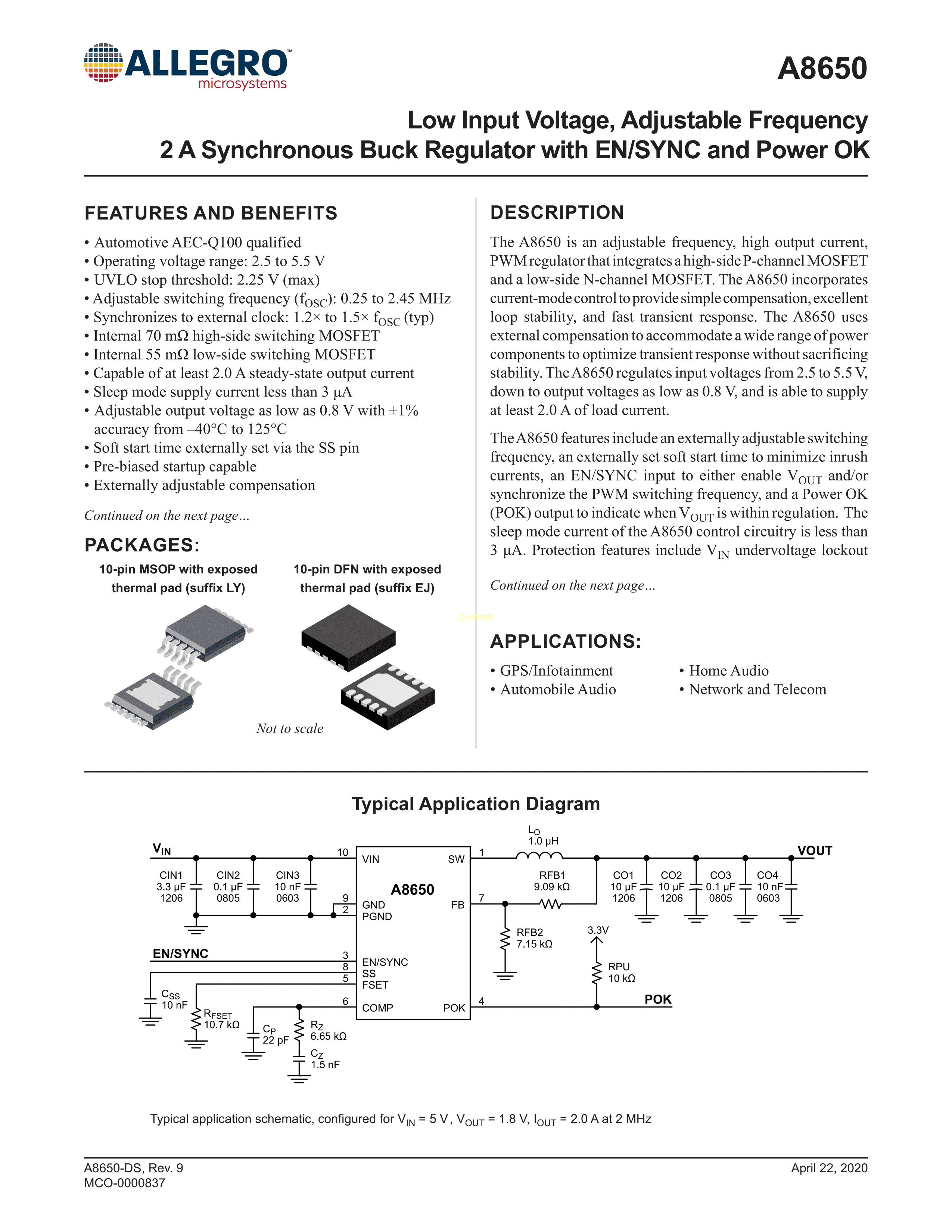 A8650KEJTR-T数据手册DFN-10_EP(3x3)封装ALLEGRO(美国埃戈罗)PDF规格书,中英文下载