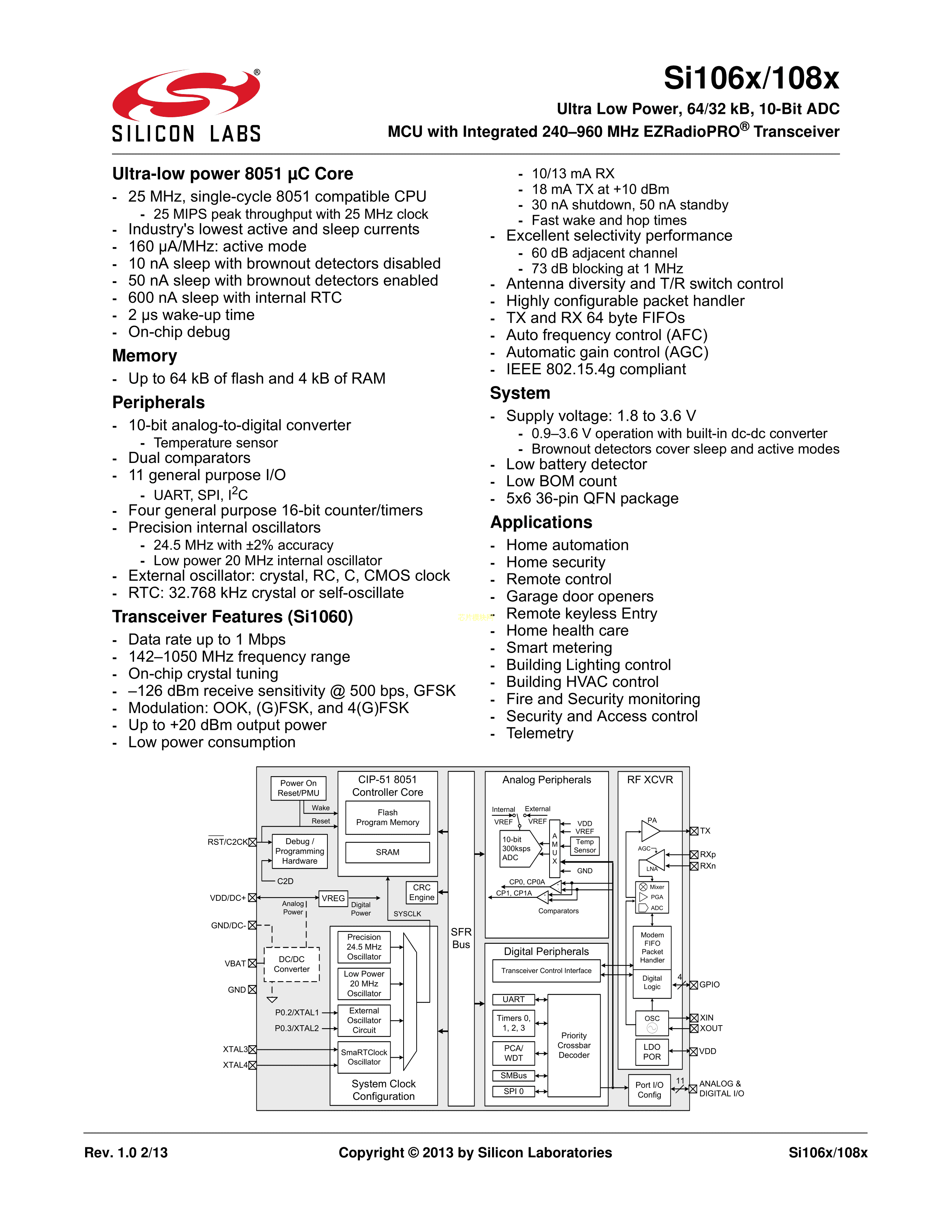 SI1065-A-GM数据手册QFN-36(5x6)封装SILICON-LABS(芯科)PDF规格书,中英文下载