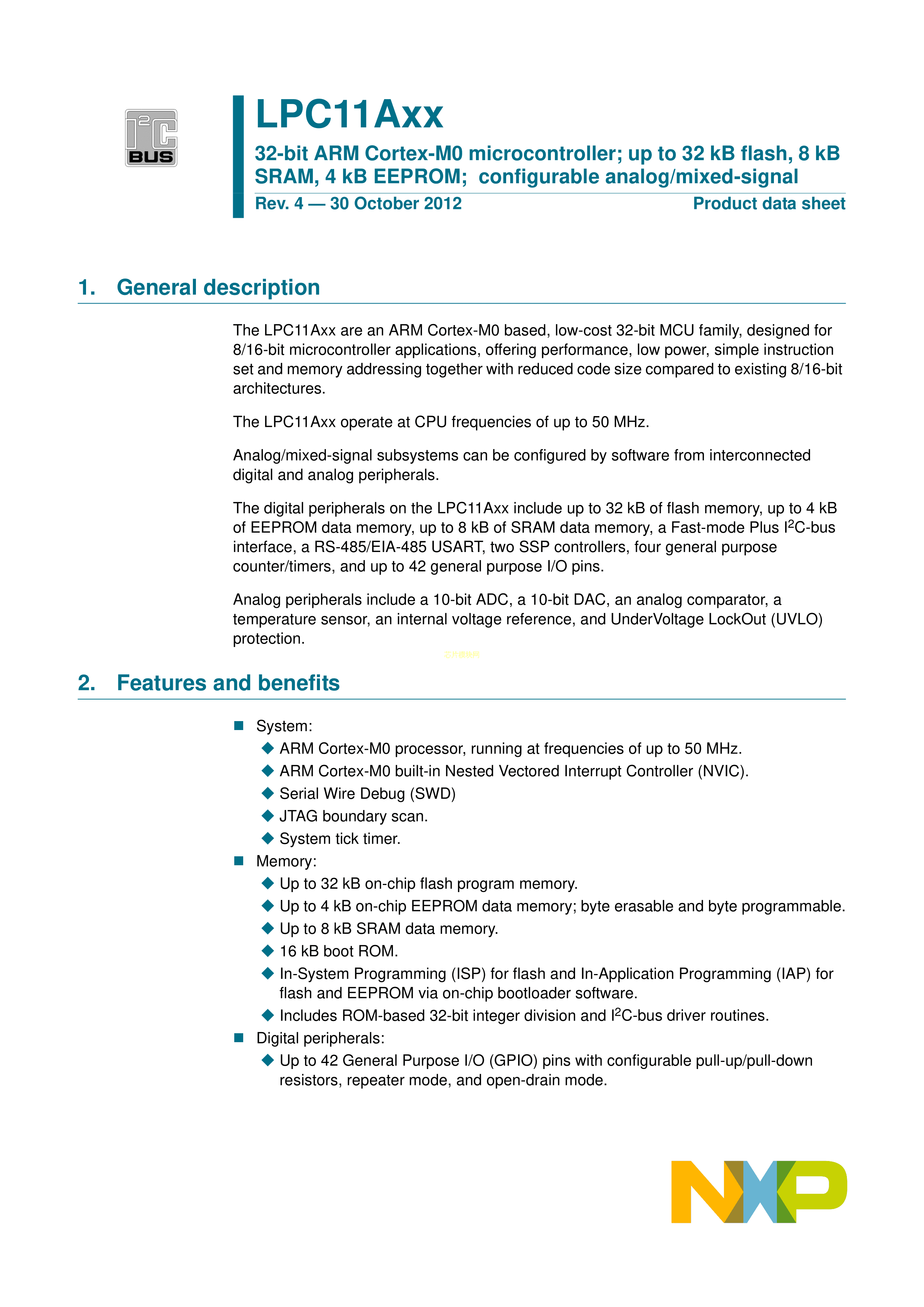 LPC11A12FHN33-101数据手册HVQFN-32(7x7)封装NXP(恩智浦)PDF规格书,中英文下载