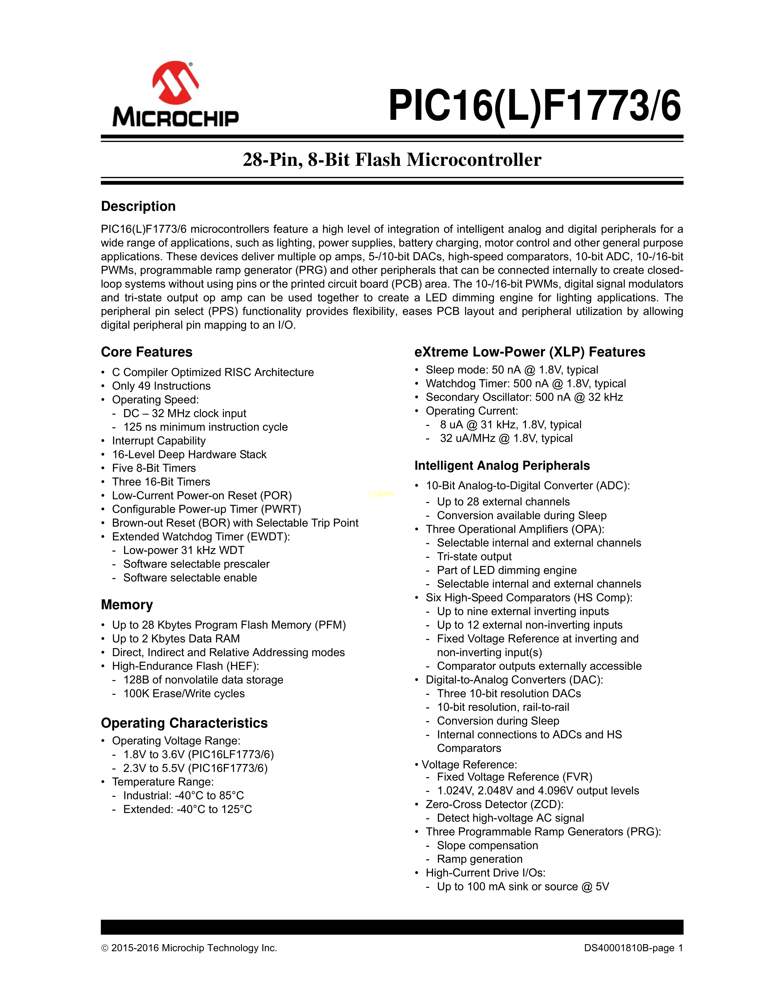 PIC16LF1776T-I-MX数据手册UQFN-28封装MICROCHIP(美国微芯)PDF规格书,中英文下载