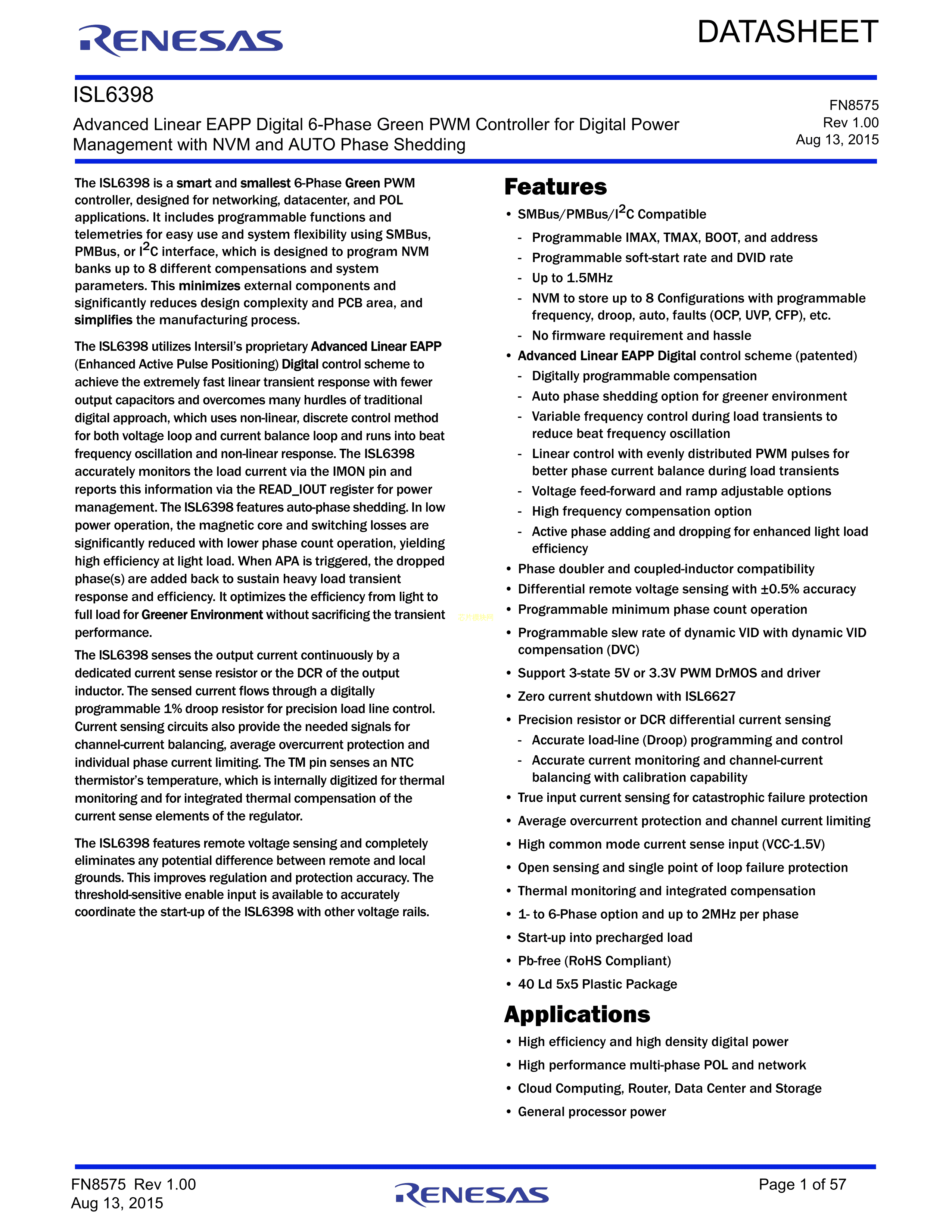ISL6398IRTZ-TK数据手册TQFN-40(5x5)封装RENESAS(瑞萨)-IDTPDF规格书,中英文下载