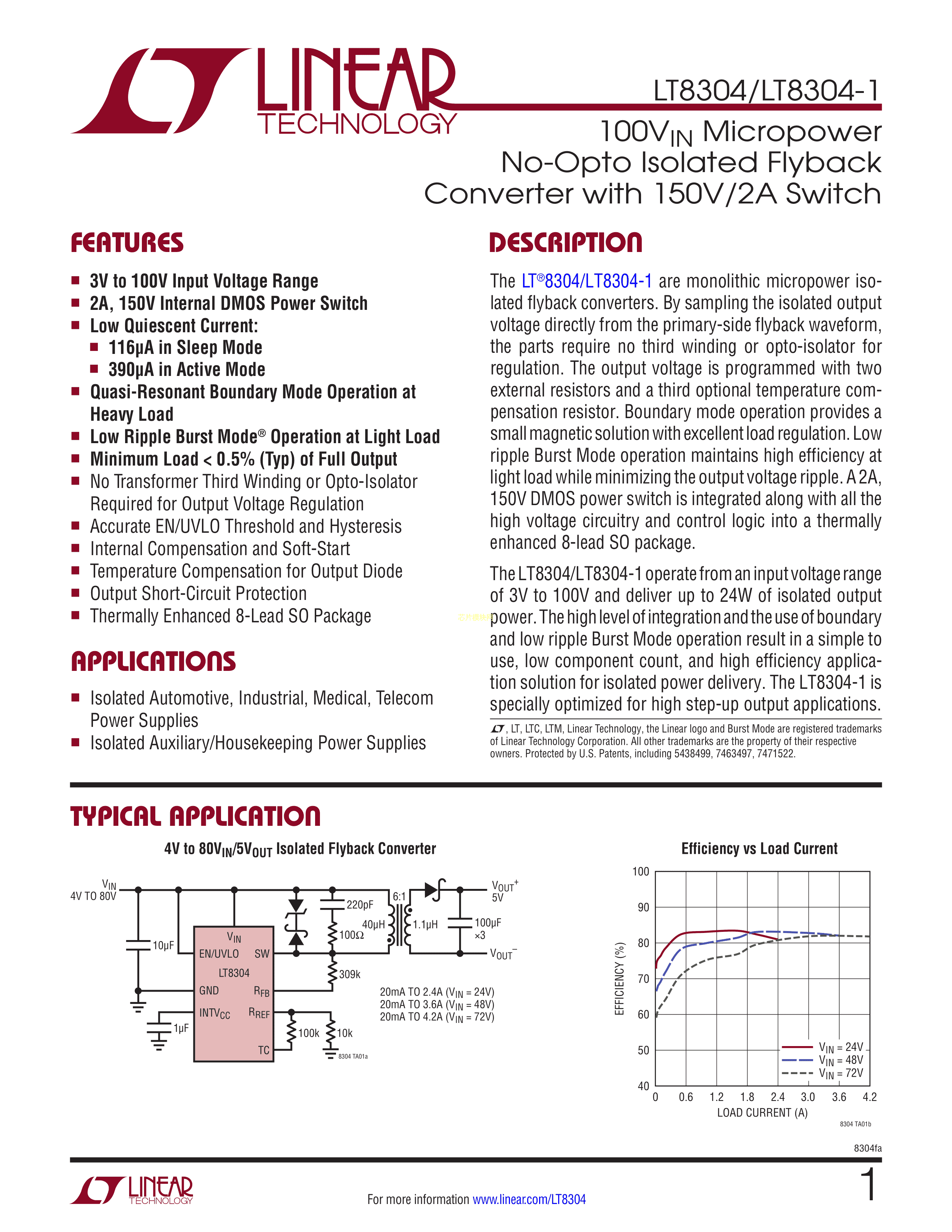 LT8304IS8E-1#TRPBF数据手册SO-8封装ADI(亚德诺)-LINEARPDF规格书,中英文下载