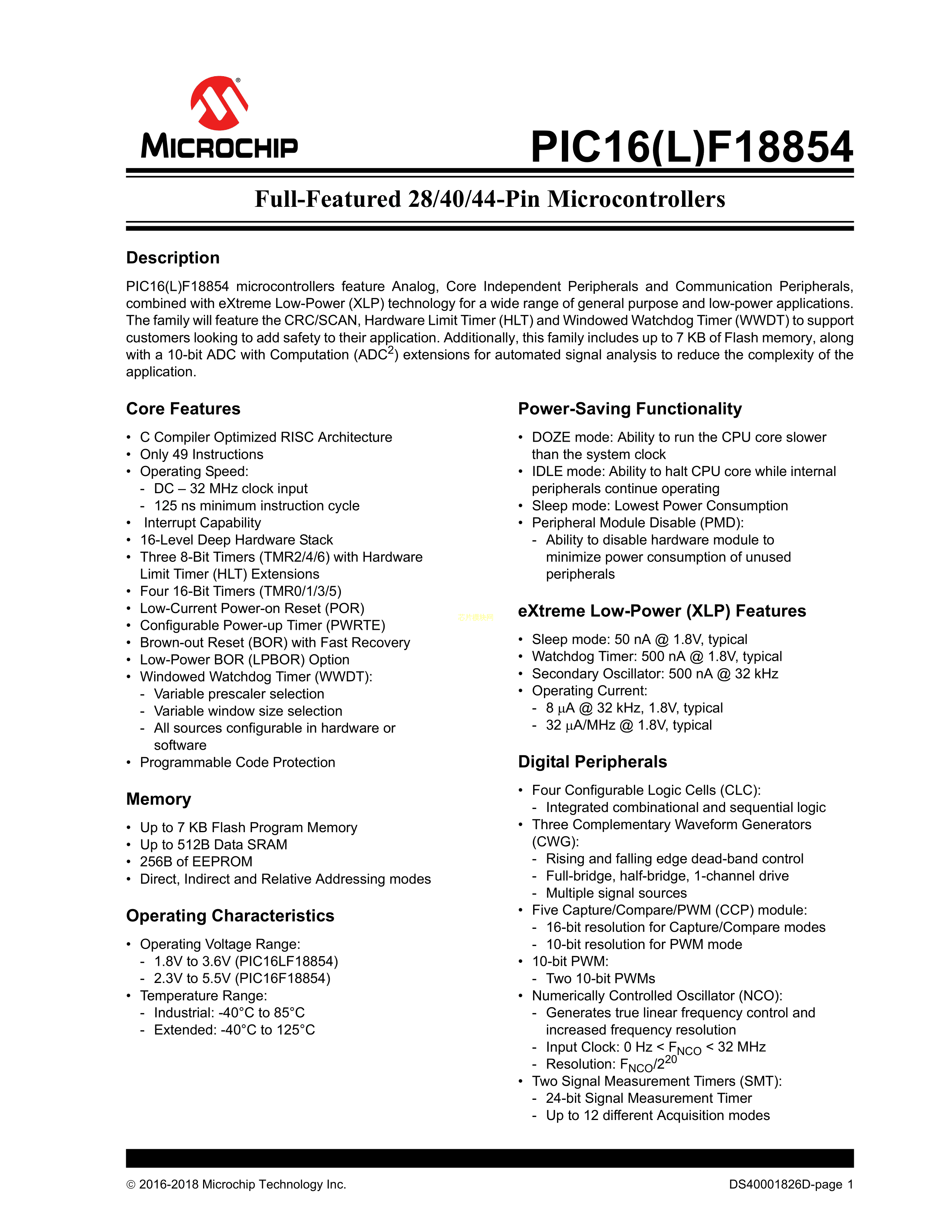 PIC16F18854T-I-MV数据手册-封装MICROCHIP(美国微芯)PDF规格书,中英文下载
