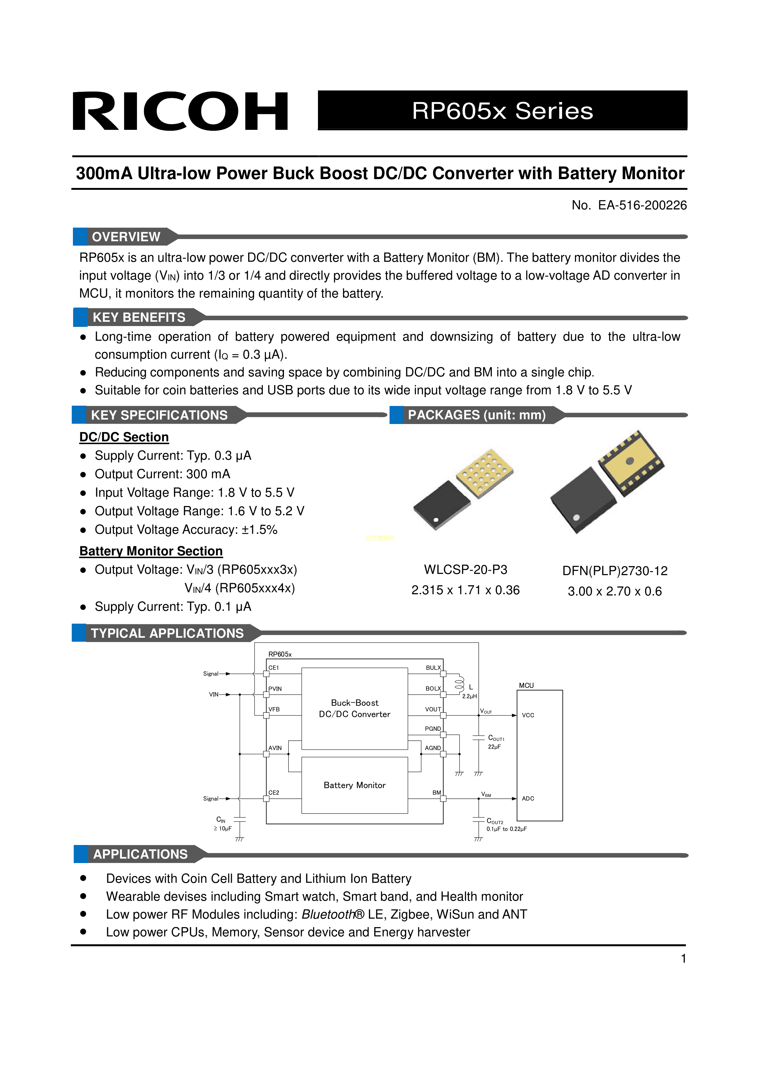 RP605Z253B-E2-F数据手册WLCSP-20-P3(2.32x1.71)封装RICOH(理光)PDF规格书,中英文下载