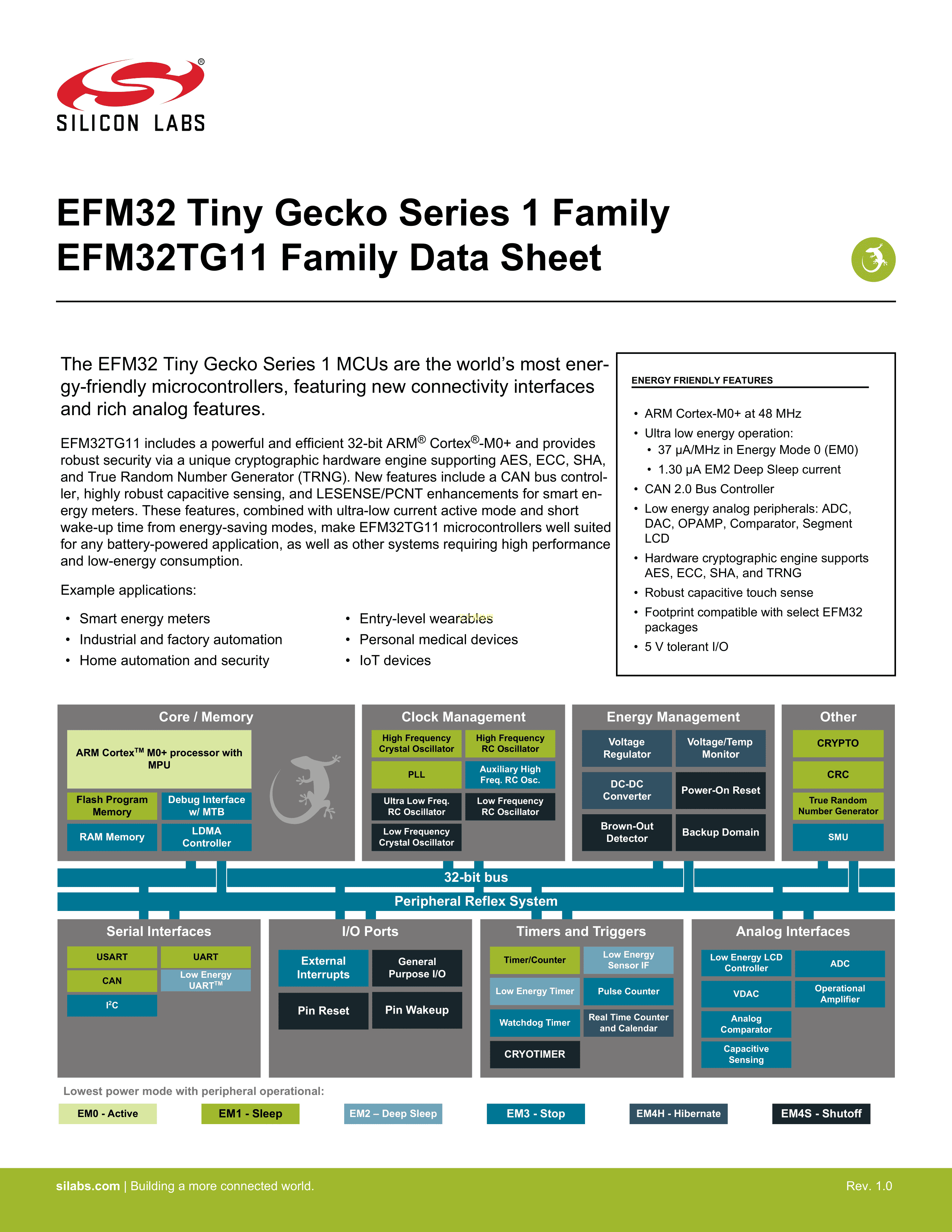 EFM32TG11B340F64IQ64-B数据手册TQFP-64(10x10)封装SILICONLABS(芯科)PDF规格书,中英文下载