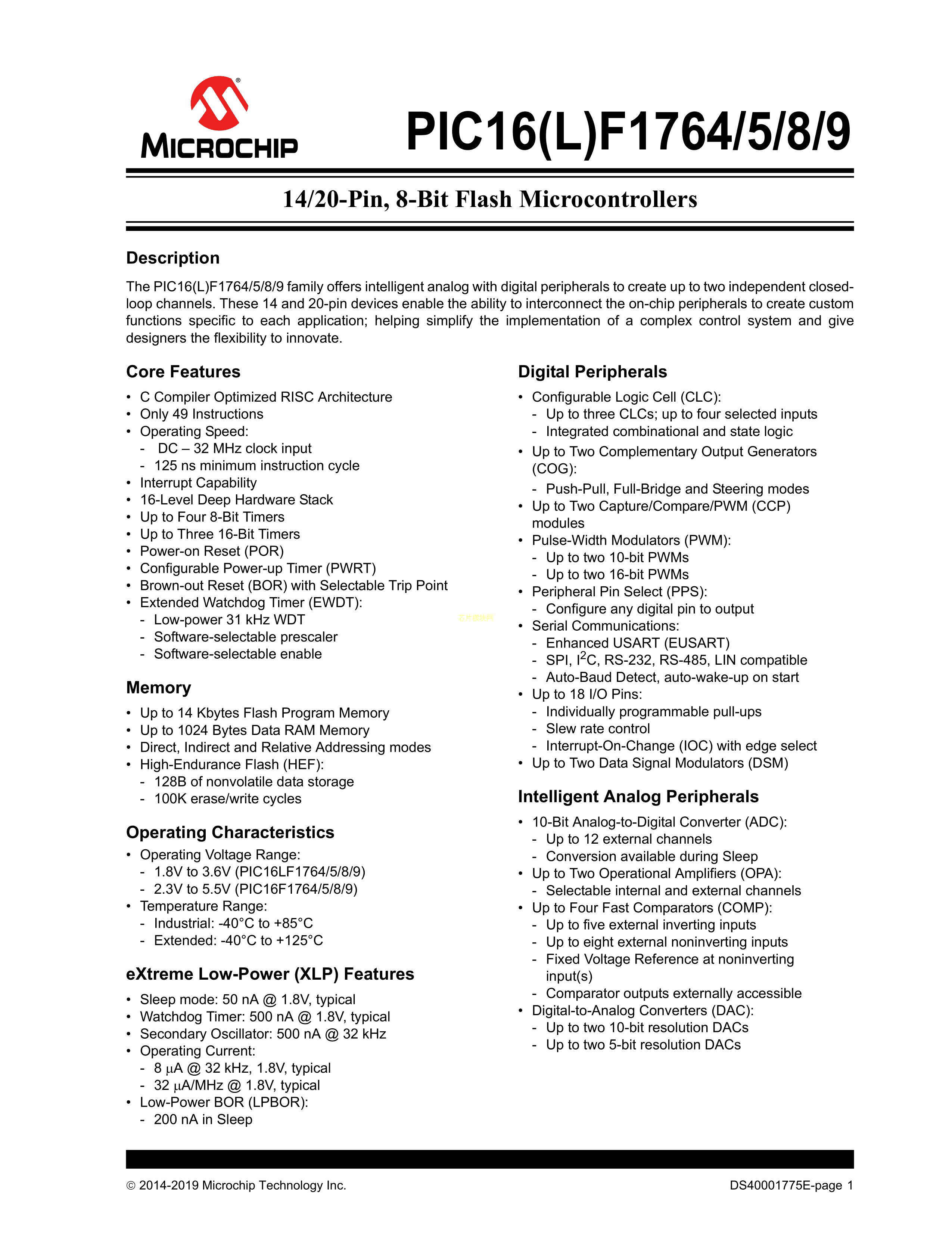 PIC16LF1765T-I-ML数据手册QFN-16封装MICROCHIP(美国微芯)PDF规格书,中英文下载