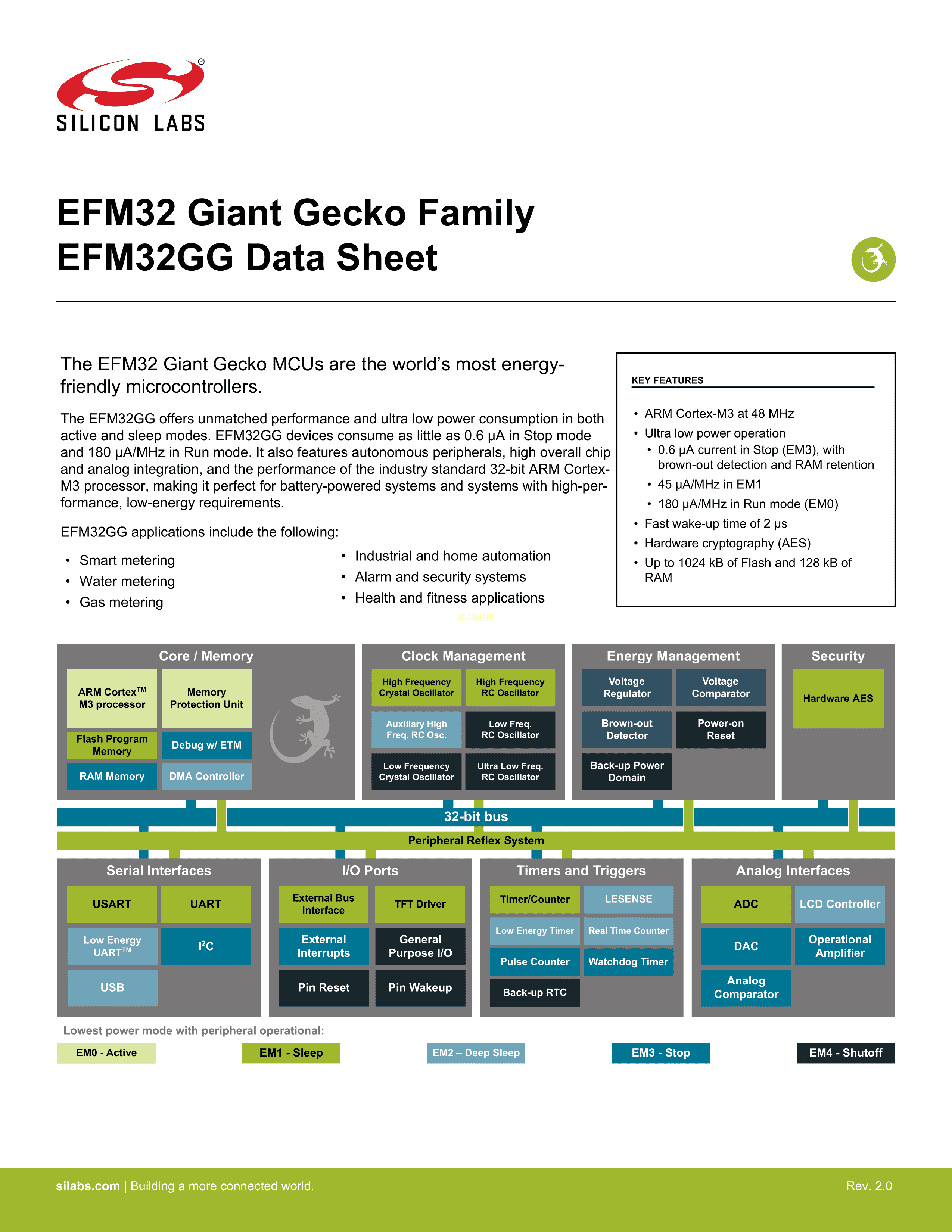 EFM32GG880F512G-E-QFP100数据手册LQFP-100(14x14)封装SILICONLABS(芯科)PDF规格书,中英文下载