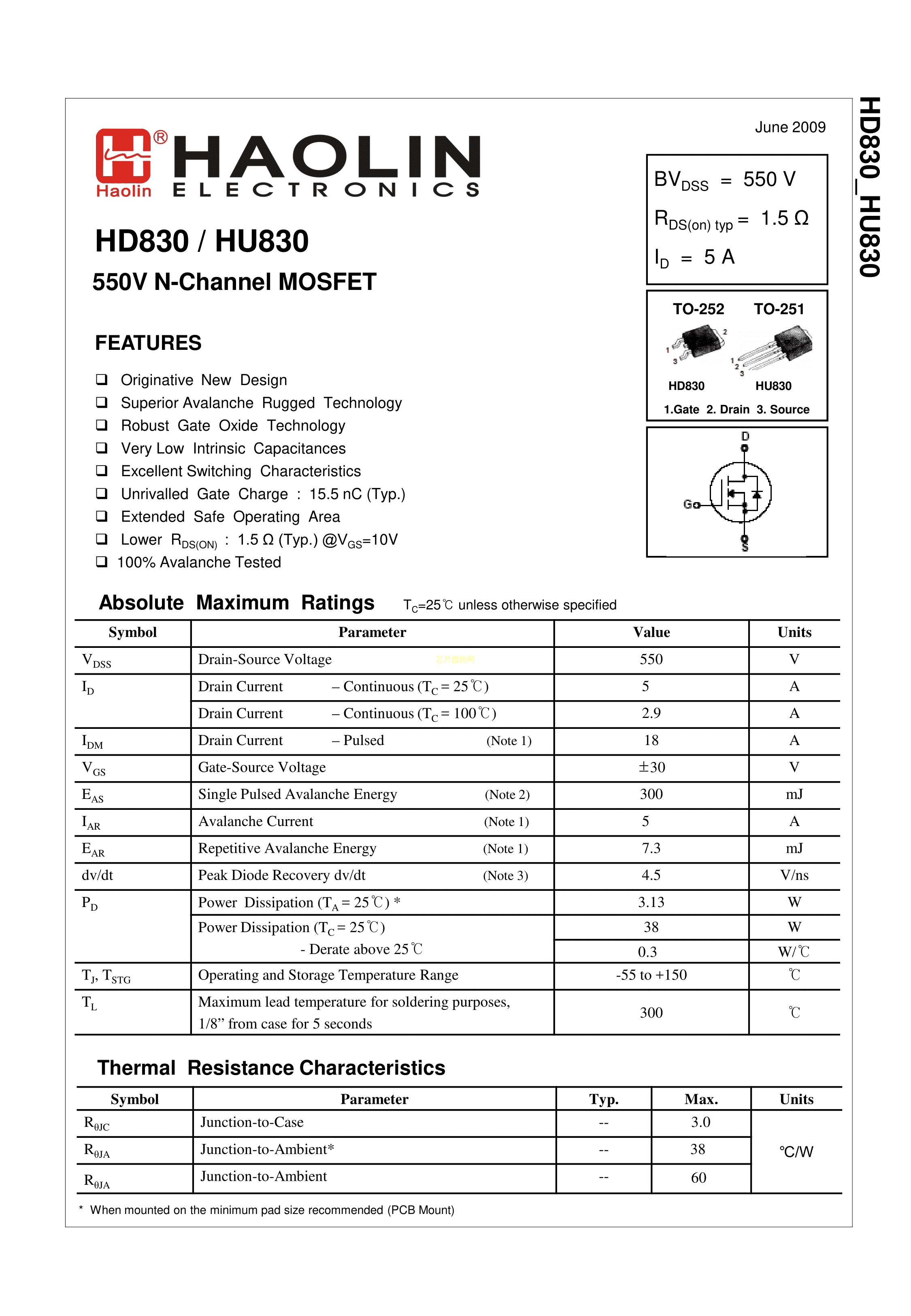 HD830数据手册TO-252-2(DPAK)封装HL(豪林)PDF规格书,中英文下载