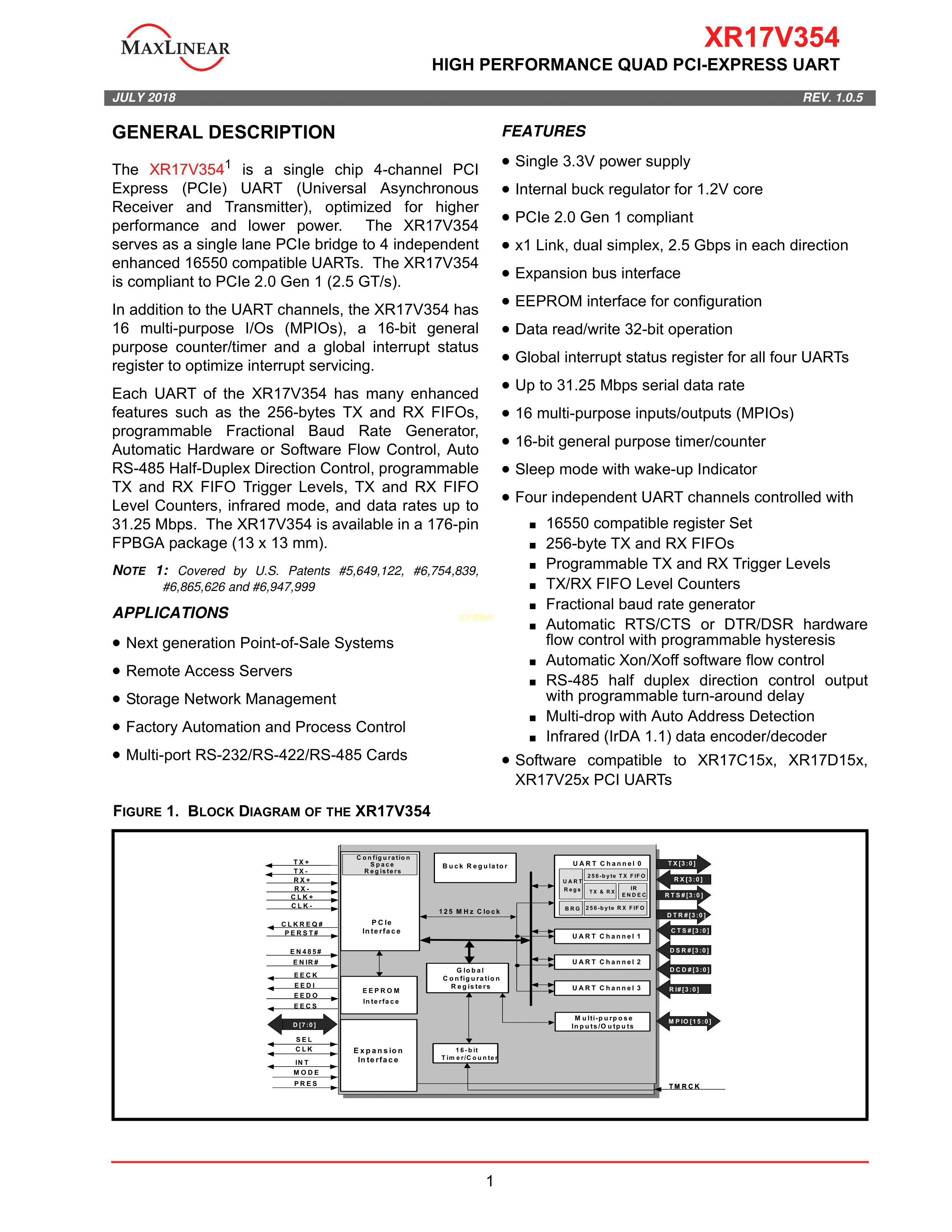XR17V354IB176-F数据手册FPBGA-176封装MaxLinearPDF规格书,中英文下载