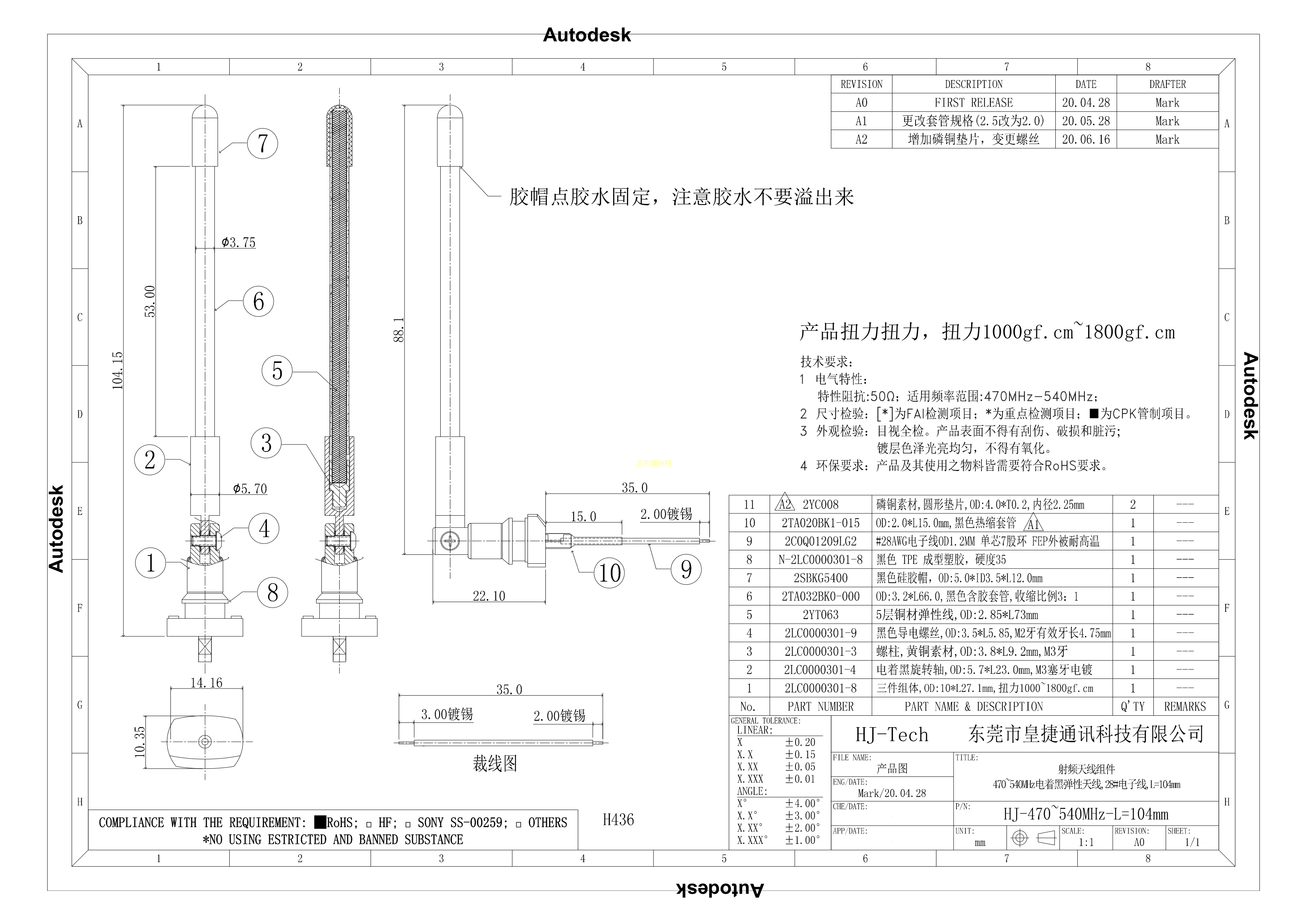 HJ-470~540MHz-L104mm数据手册-封装皇捷PDF规格书,中英文下载