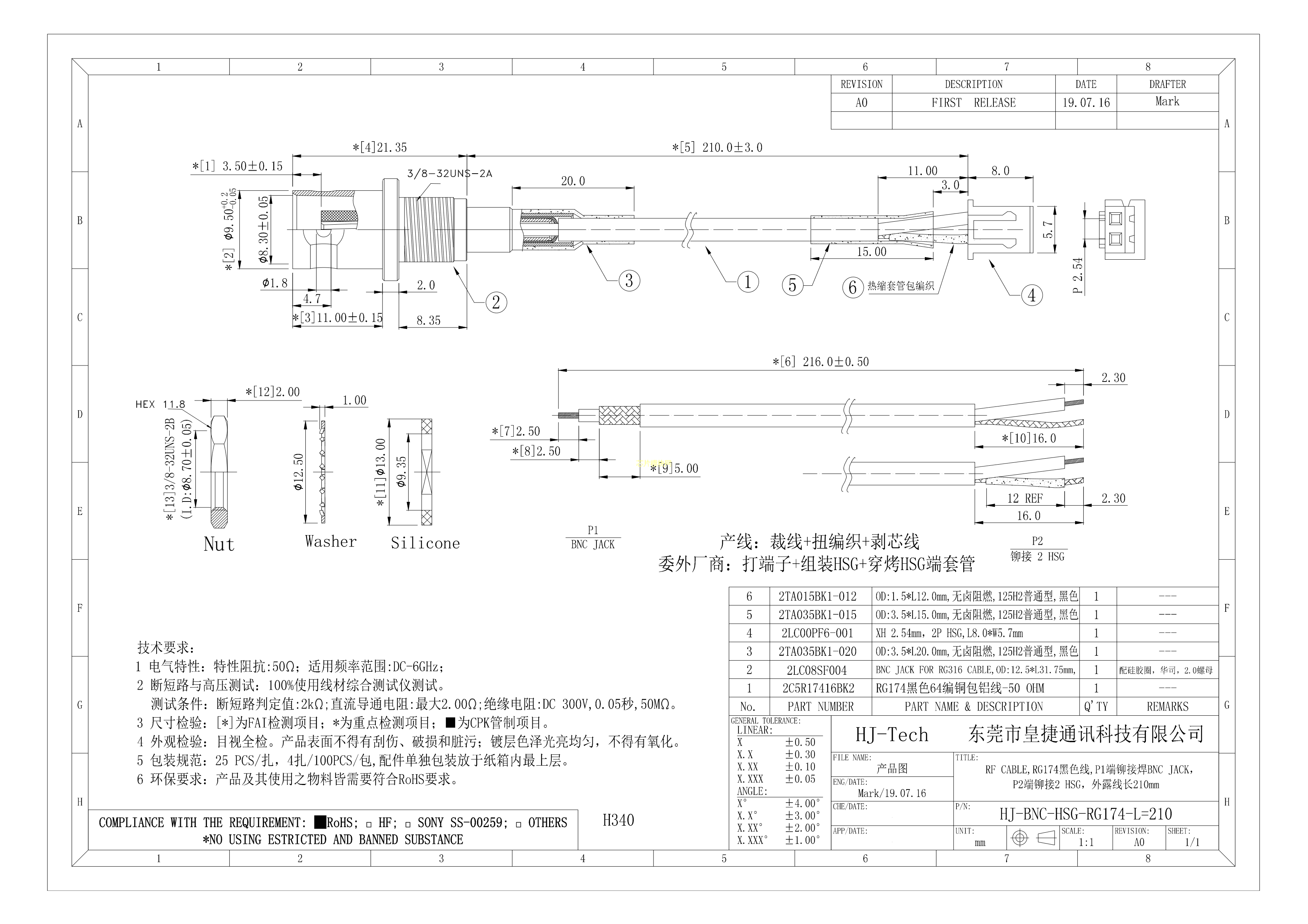 HJ-BNC-HSG-RG174-L210数据手册-封装皇捷PDF规格书,中英文下载