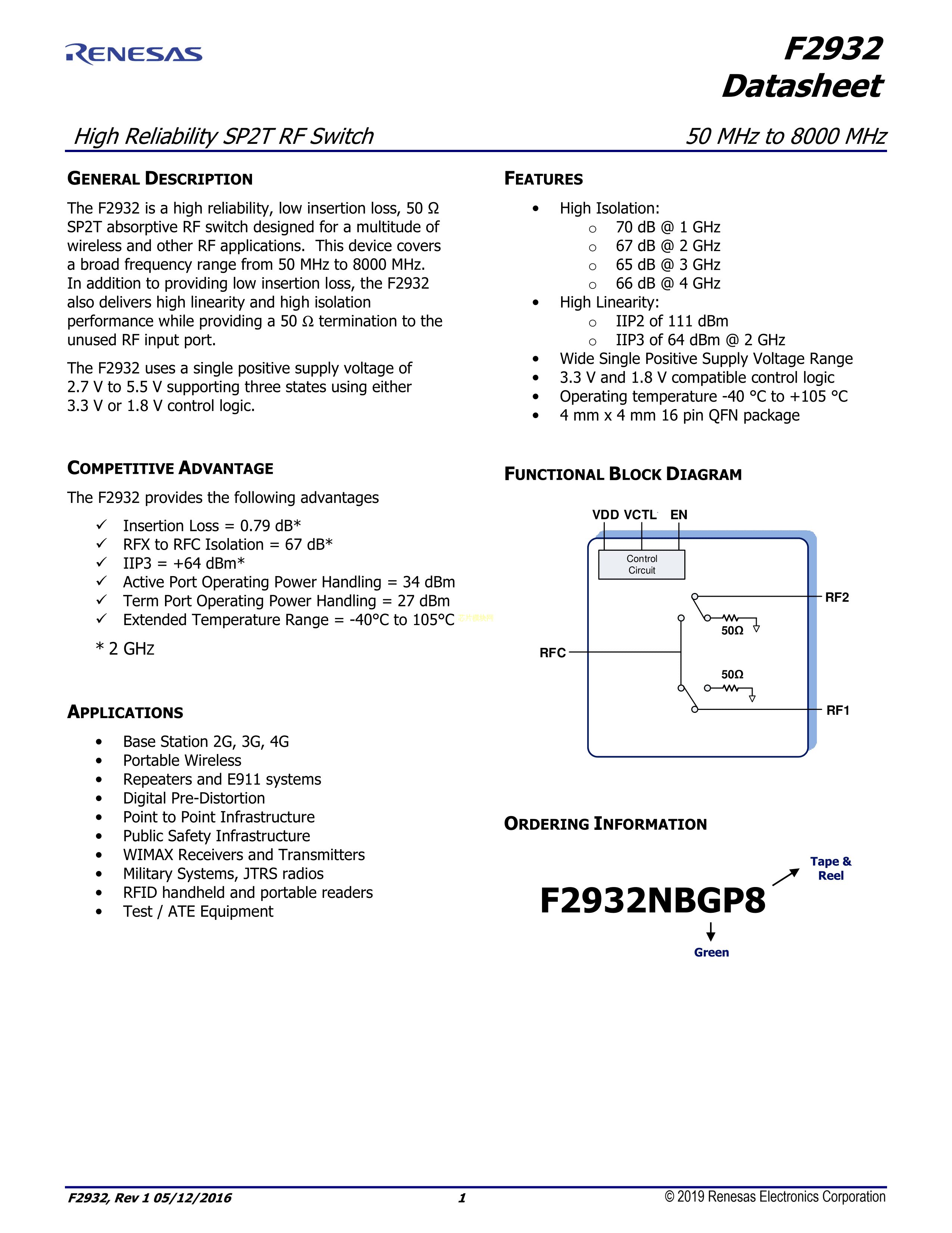 F2932NBGP8数据手册QFN-16(4x4)封装RENESAS(瑞萨)-IDTPDF规格书,中英文下载