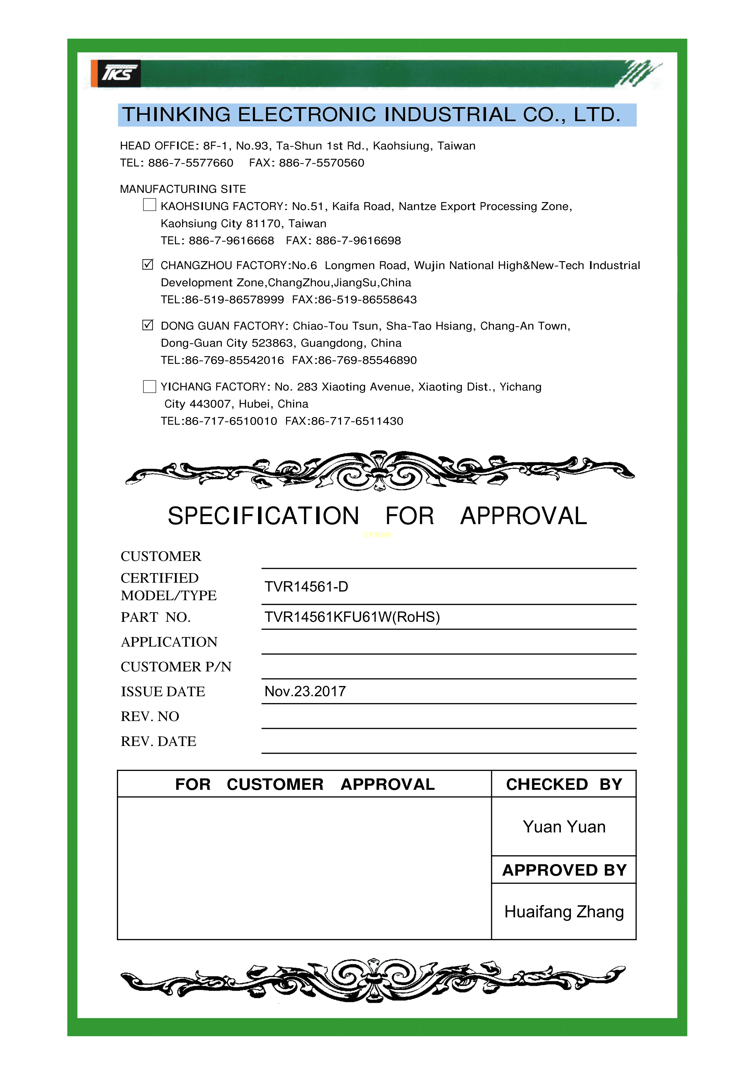 TVR14561KFU61W数据手册径向引线P7.5mm封装TKS(兴勤)PDF规格书,中英文下载